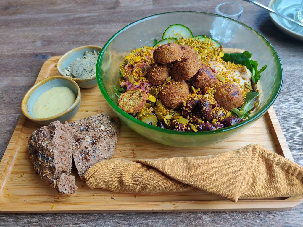 Pros: Zowel buiten als binnen kunnen zitten, Ze weten goed wat vegan inhoud