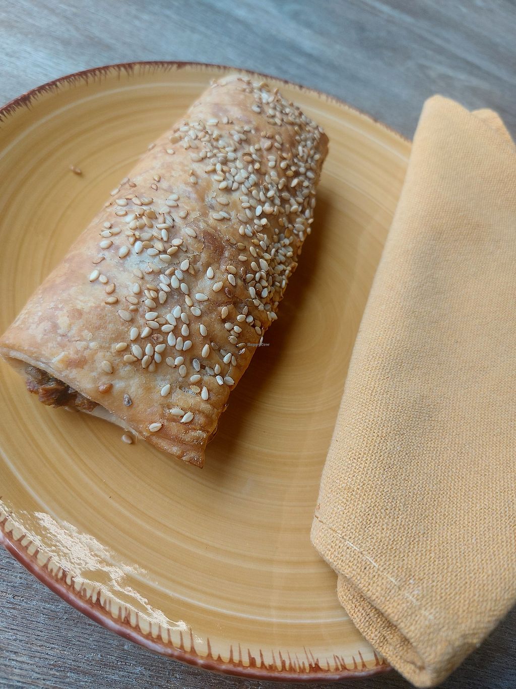 Zowel vegan lunch opties als taartjes beschikbaar. Ik had een broodje vegan 'kip'saté met komkommer en gefrituurde uitjes. Zeker aan te raden. De sfeer is ook goed. Je kunt ook buiten zitten.