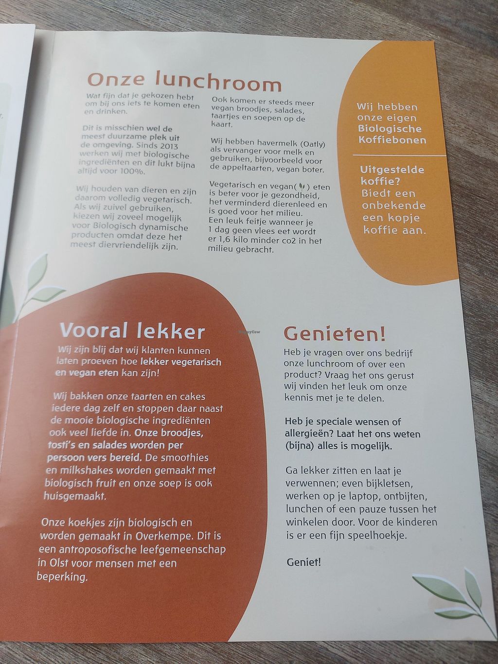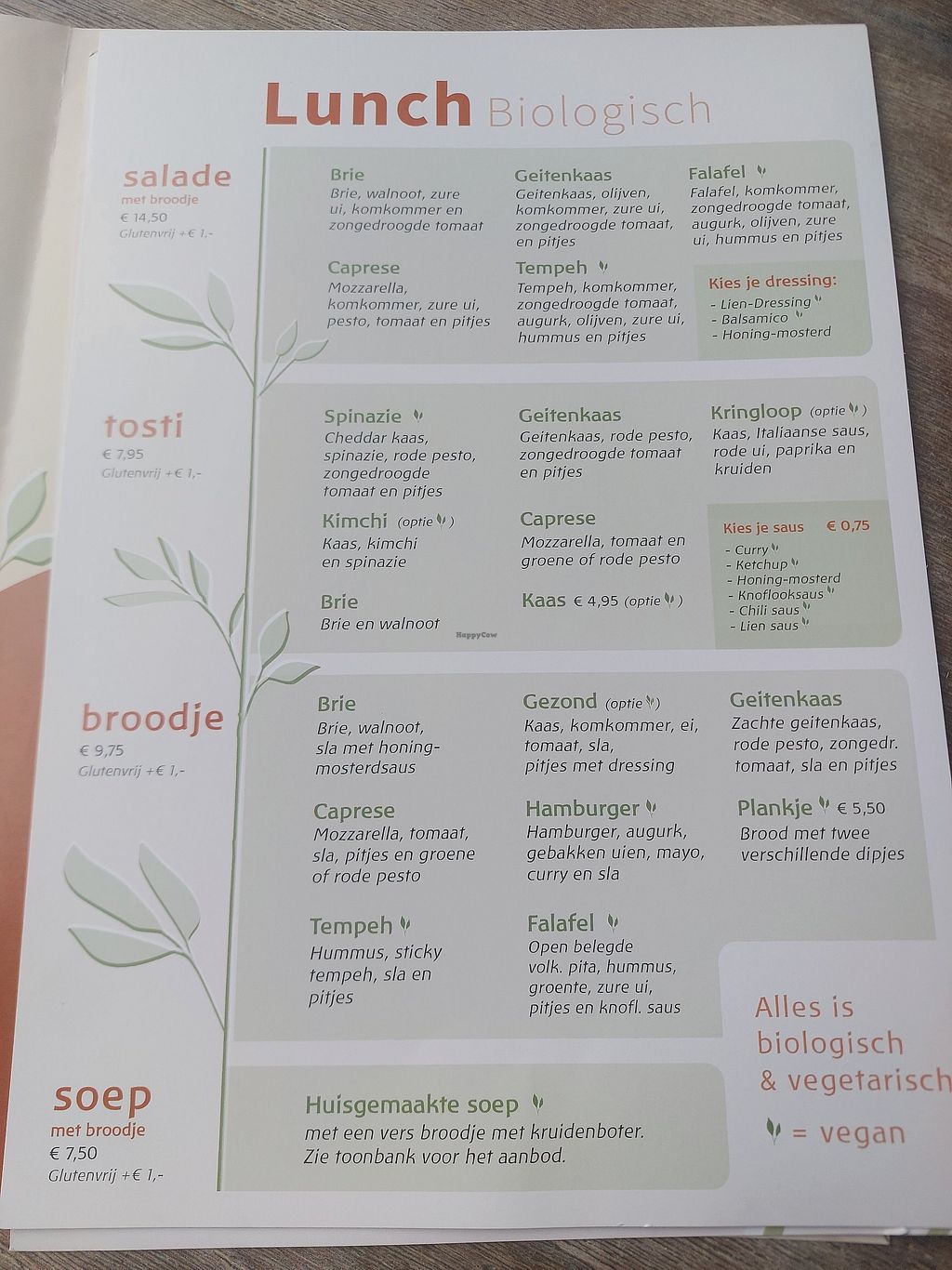Pros: Alle lunch-opties glutenvrij mogelijk!, Veel vegan keuze & alles is biologisch , Superleuke kringloop, aanrader!