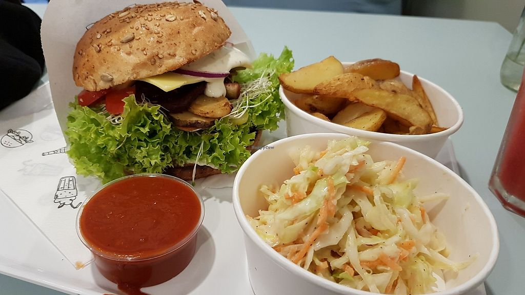 Polish chain of vegan burger eateries founded 2013 in Warsaw. Uses ingredients like tofu, seitan, millet, chickpeas, and vegetables to make the burgers which are served in buns with sauce of your choice. Other foods offered are wraps, bowls, fries, smoothies, cakes, cookies, and drinks. This outlet est. 2017. Reported closed August 2022.