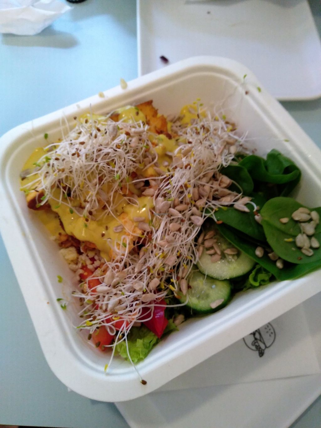 Cons: Bardzo suche jedzenie, Dosyć drogo jak na ilość sałaty w sałatce.