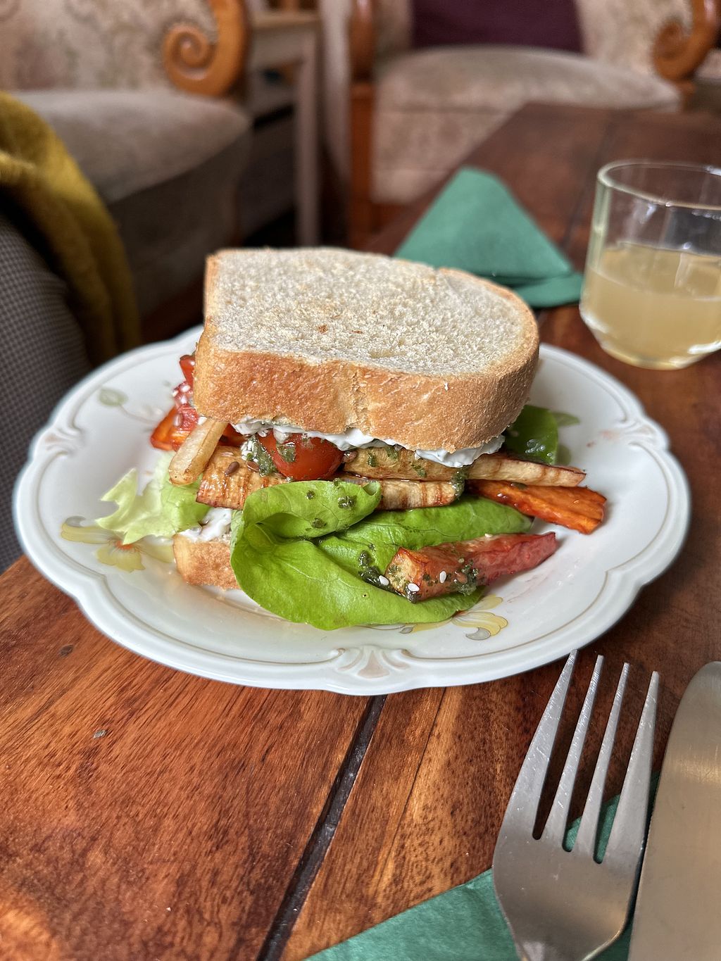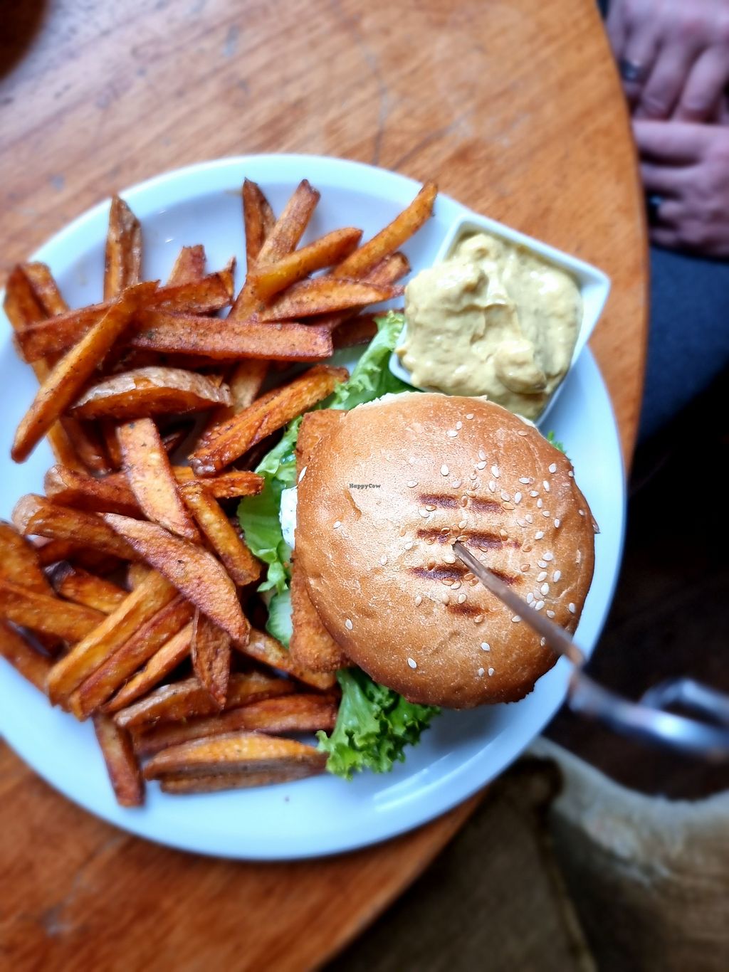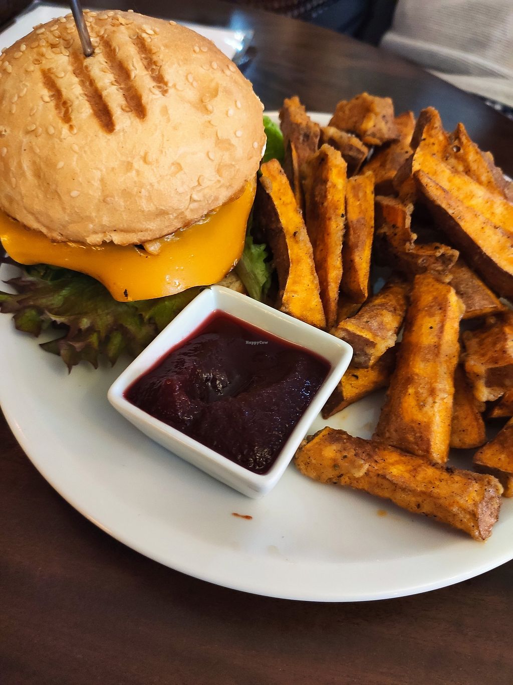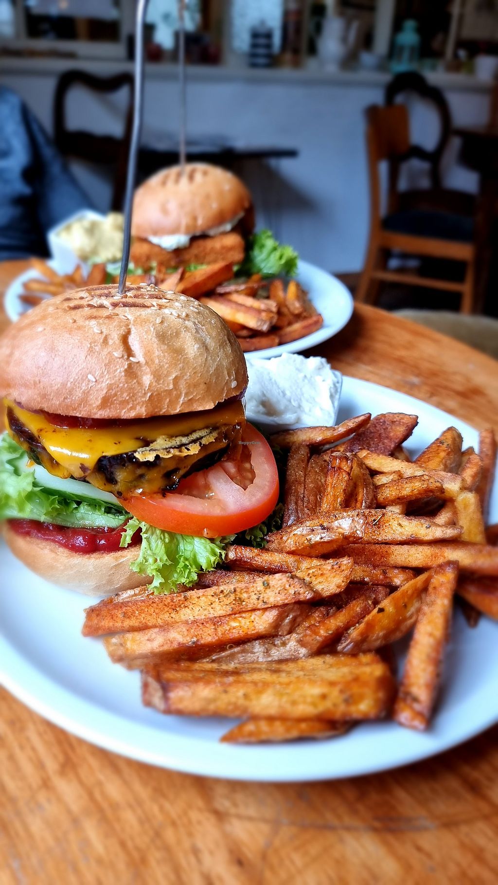 I ate a vegan burger and a big peace of cake. The food was delicious! 😋 Also the staff is super friendly and the cafe has a very cosy atmosphere. Definitely recommended!
