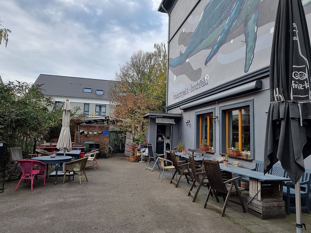 Krümelküche is vegan cafe operating since Aug 2014 in the Hausprojekt Hochfeld, a place for people to create something they like, to live together, and to join different projects. Serves vegan burgers, sandwiches, cakes. Everything is house-made, and most ingredients are organic. There's also a little shop selling vegan products in the entrance room as well as a space for local artists to sell their products. Hosts concerts some weekends. Companion animal friendly. Reported closed December 2024.
