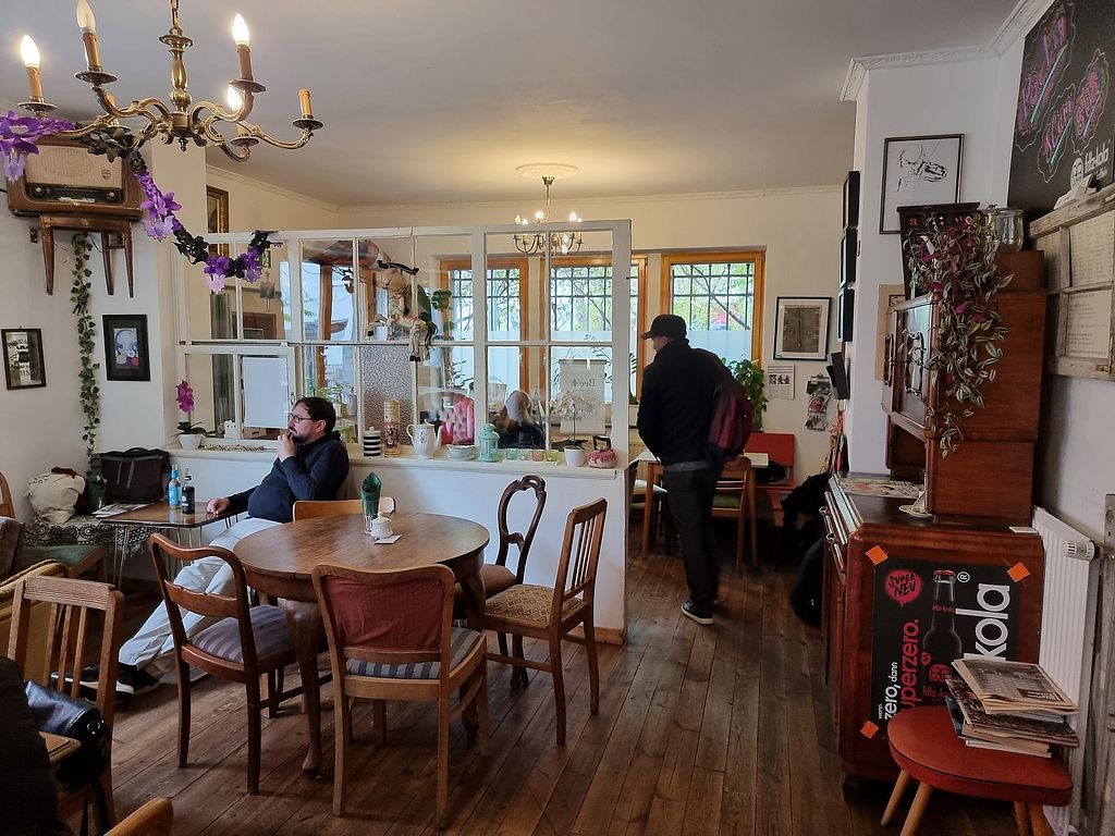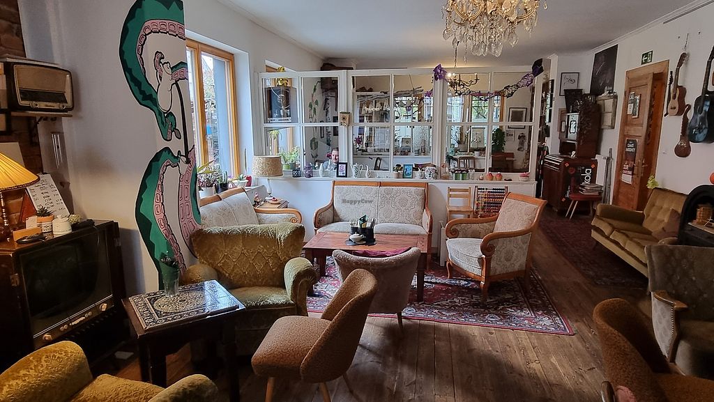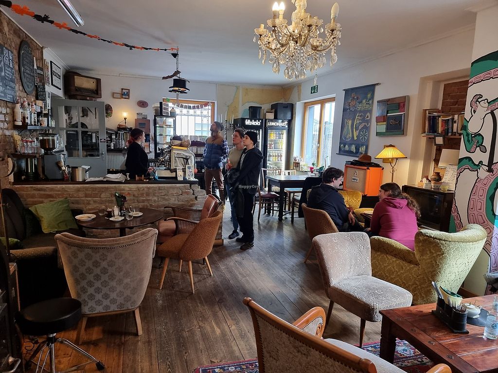 The café has a very comfortable interior with cosy corners where you can relax in oldfashioned chairs, think plush and coffee tables. The athmosphere is relaxed and alternative.