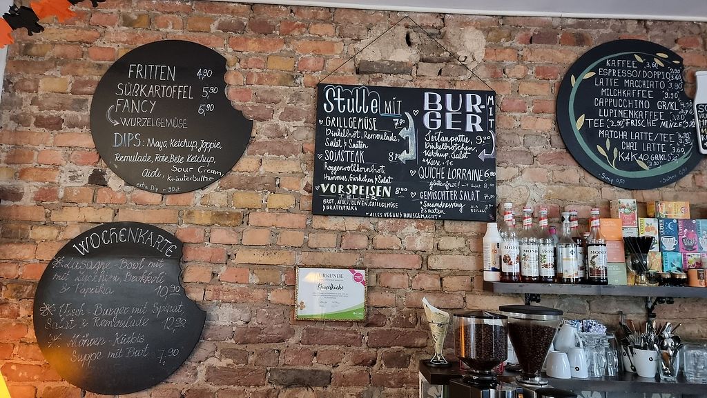 Super leckere Kuchen, feste Karte mit z. B. Spinatquiche, Grillgemüse-Stulle und mega leckere Pommes mit diversen selbstgemachten Saucen. Dazu die wechselnde Wochenkarte - ein veganer Traum. Und gemütlich ist es auch und alle sind supernett.