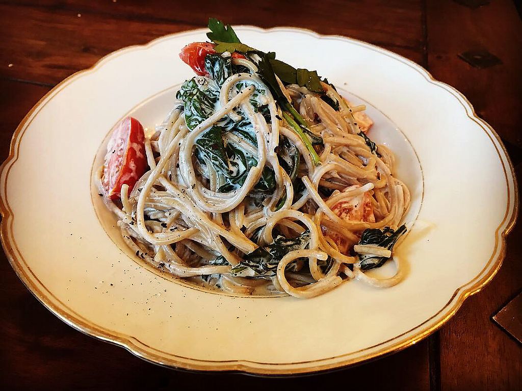 Pasta in Spinat-Rahm und Weißwein
