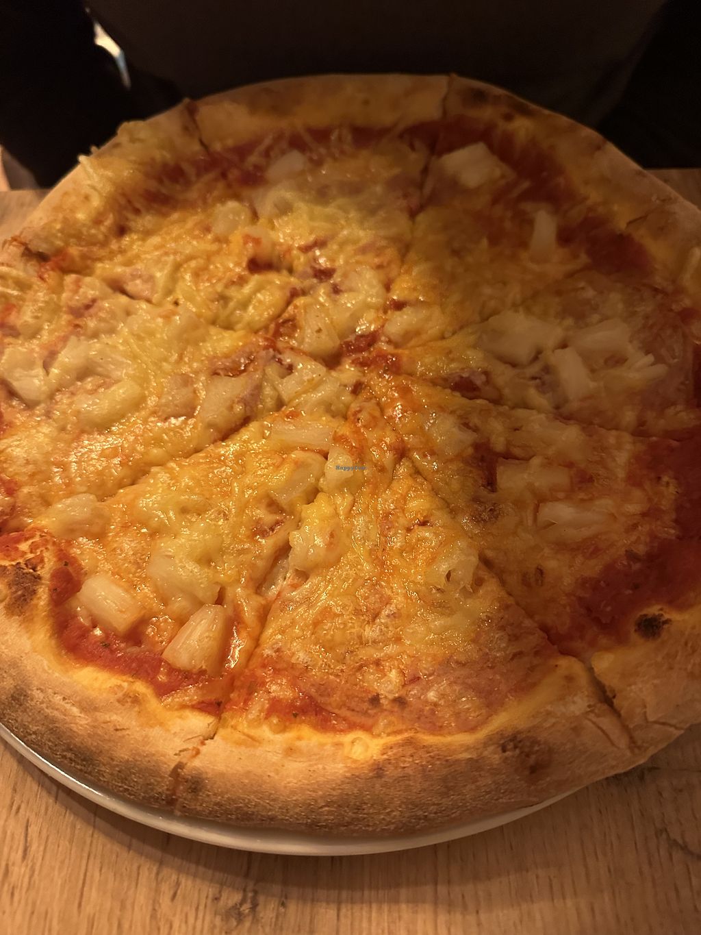 Kleiner freundlicher Laden (gut für Abholen/Lieferung) mit einer grossen Auswahl an veganen Pizzen. Die Pizza Kruste war voll geladen und hatte eine interessante Mischung an Geschmäcken. Die Pizza Quattro Formiaggio hatte cremigen Käse (sehr gute Konsistenz) mit herzhaftem Geschmack. Wir hatten beide Pizzen in 30cm Grösse, eine davon kann genug für 2 Personen für eine kleine Mahlzeit sein.