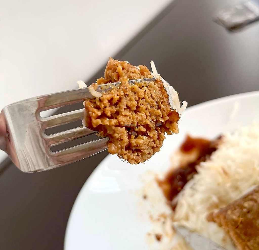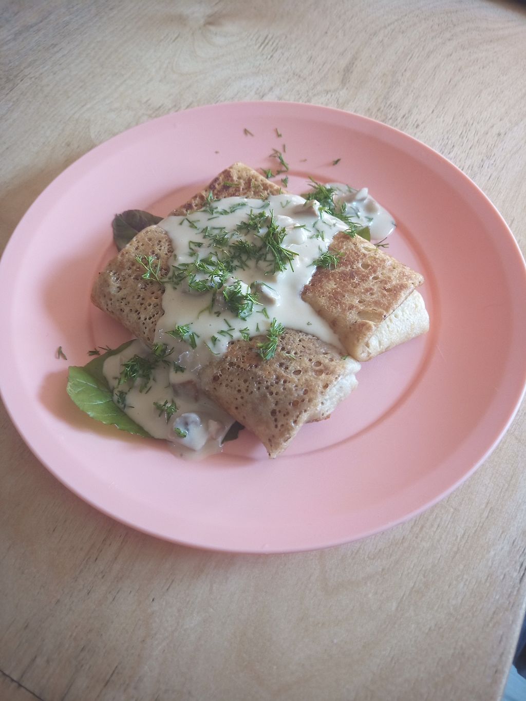 Cheburek: yeast-free dough, soy mince, homemade kimchi, onion, spices