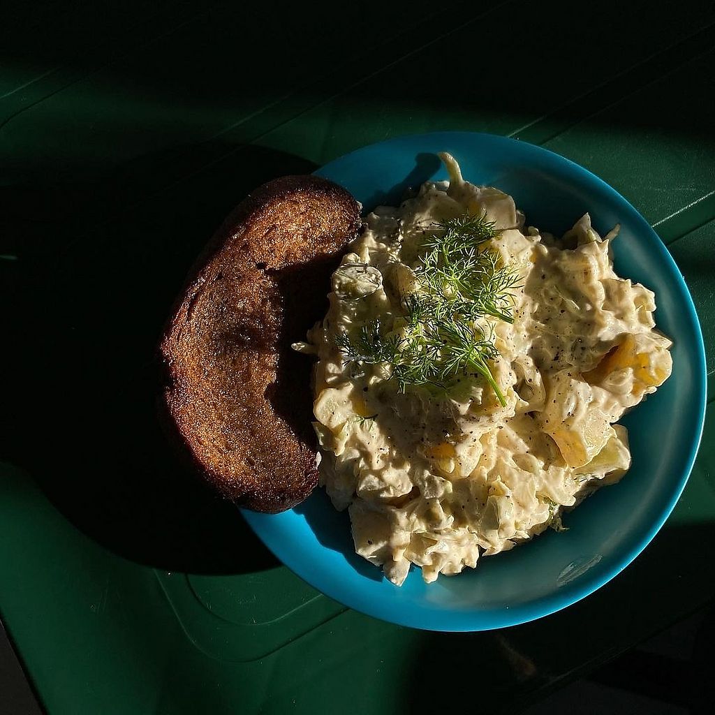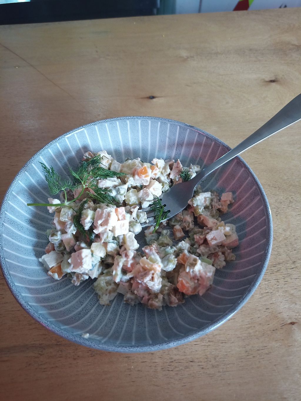 Potato salad: potatoes, cabbage, pickled cucumber, apple, dill, homema…