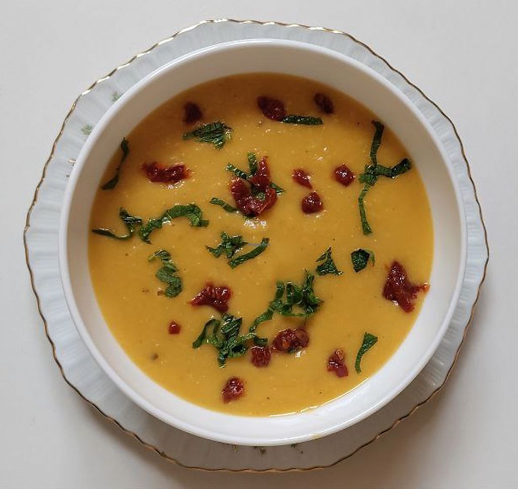 Armenian apricot soup: apricots, lentils, onions, carrots, mint, sun-d…