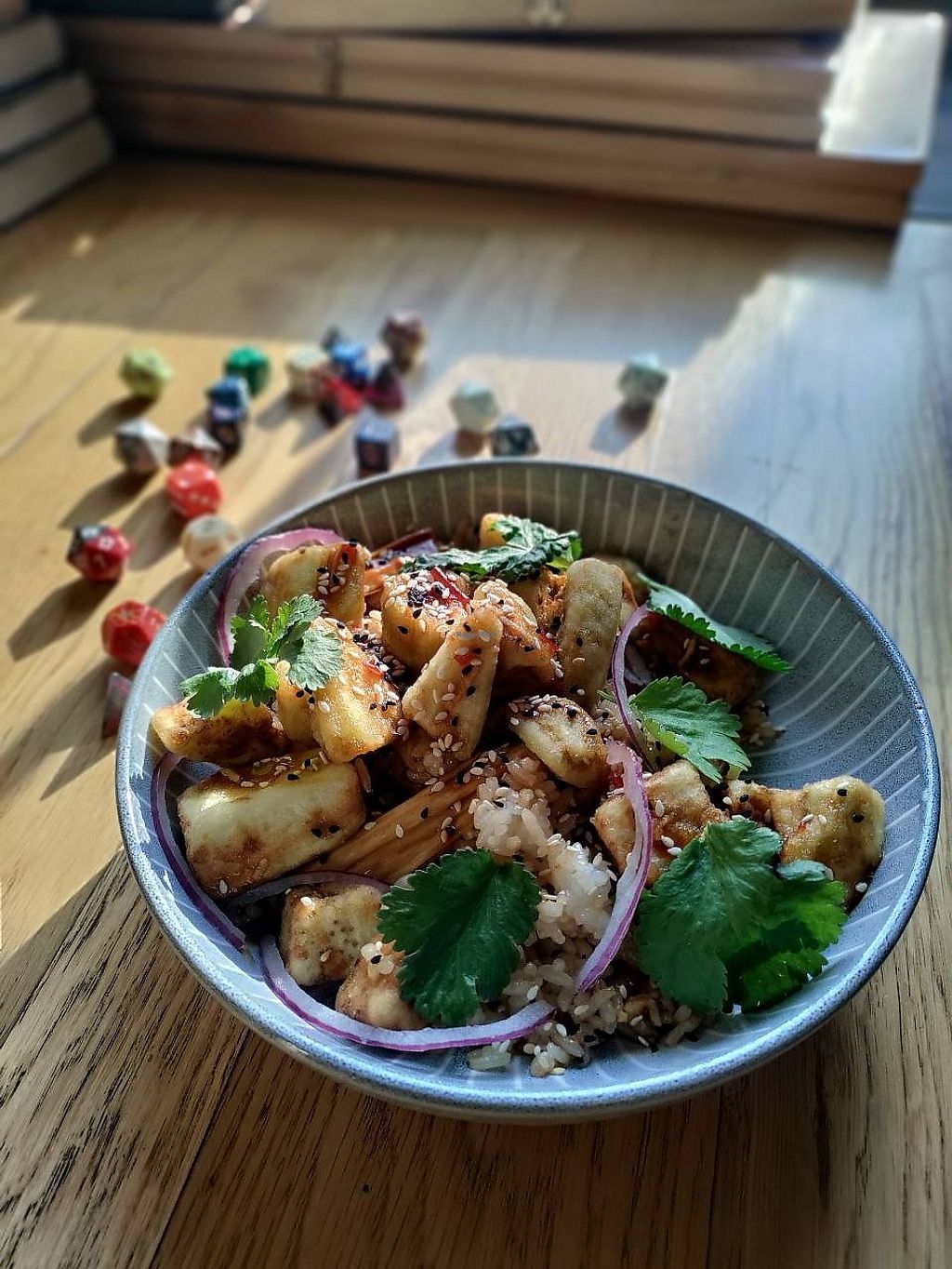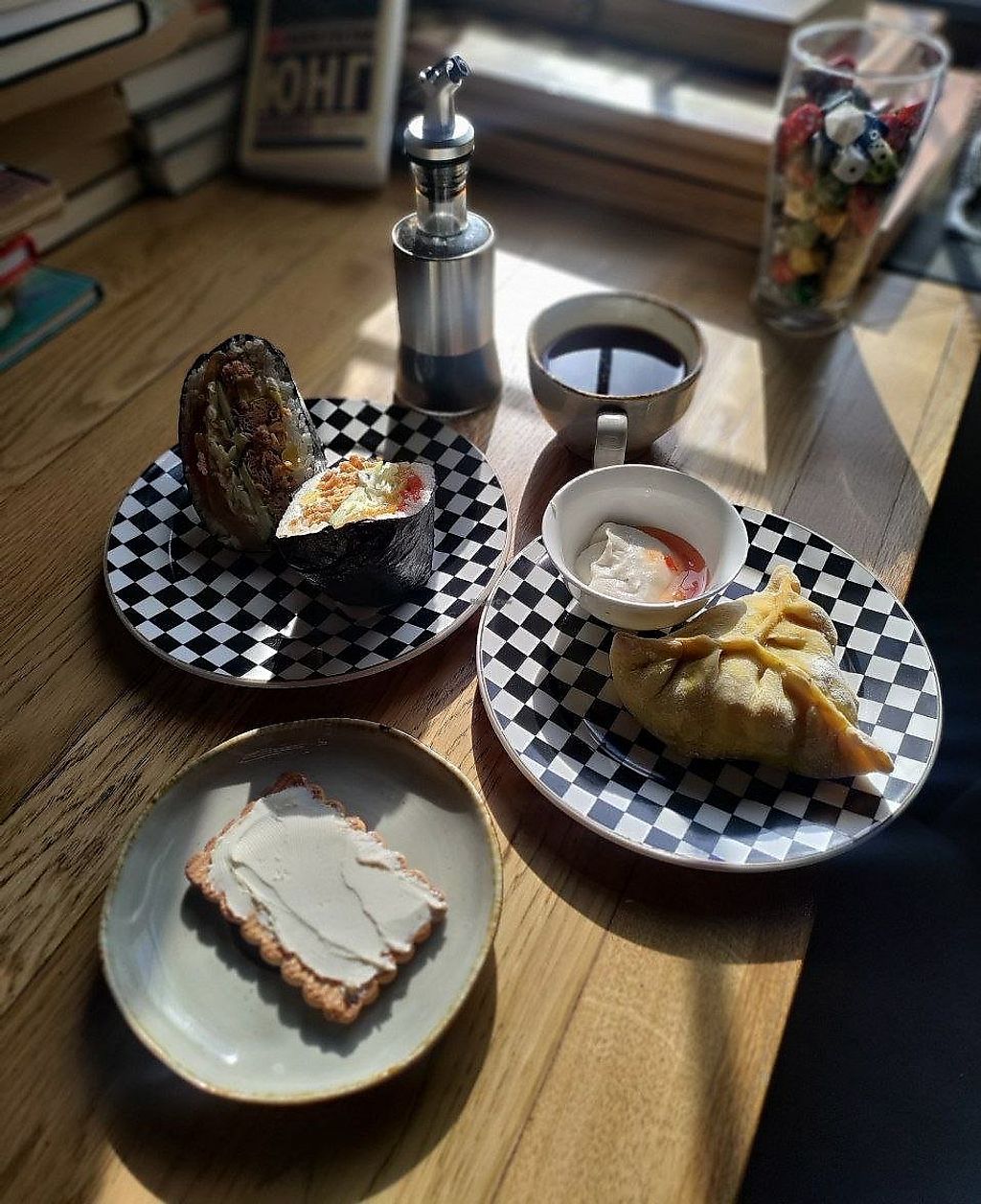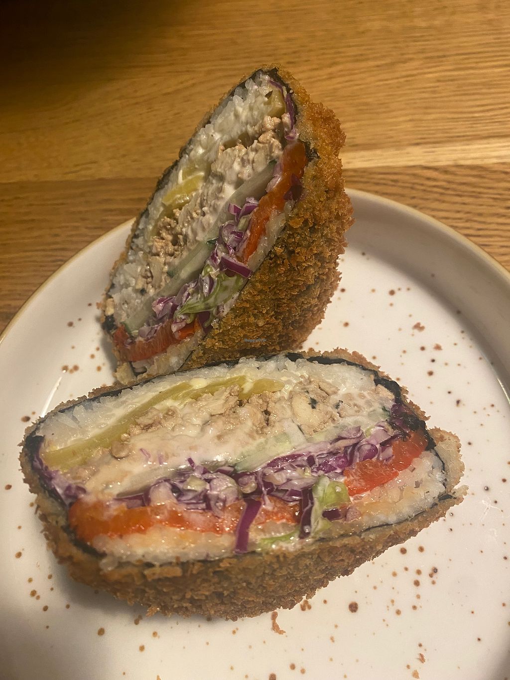 Kimbap: nori sheets, rice, cashew aioli, soy mayonnaise, red cabbage, …
