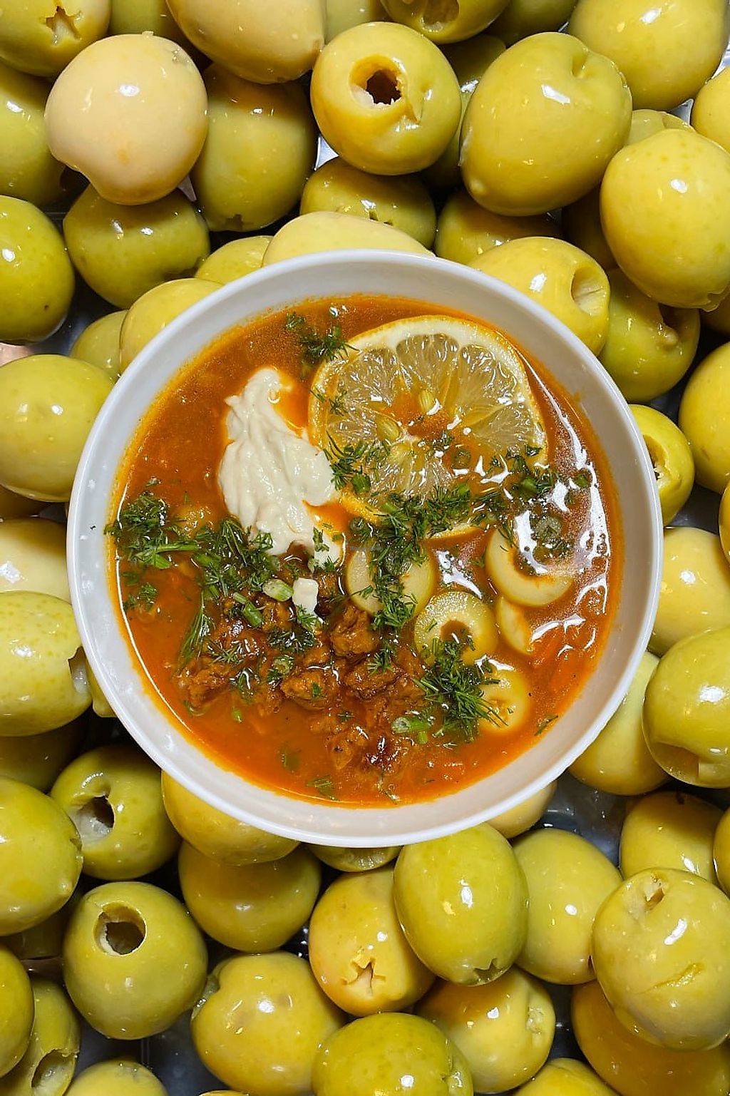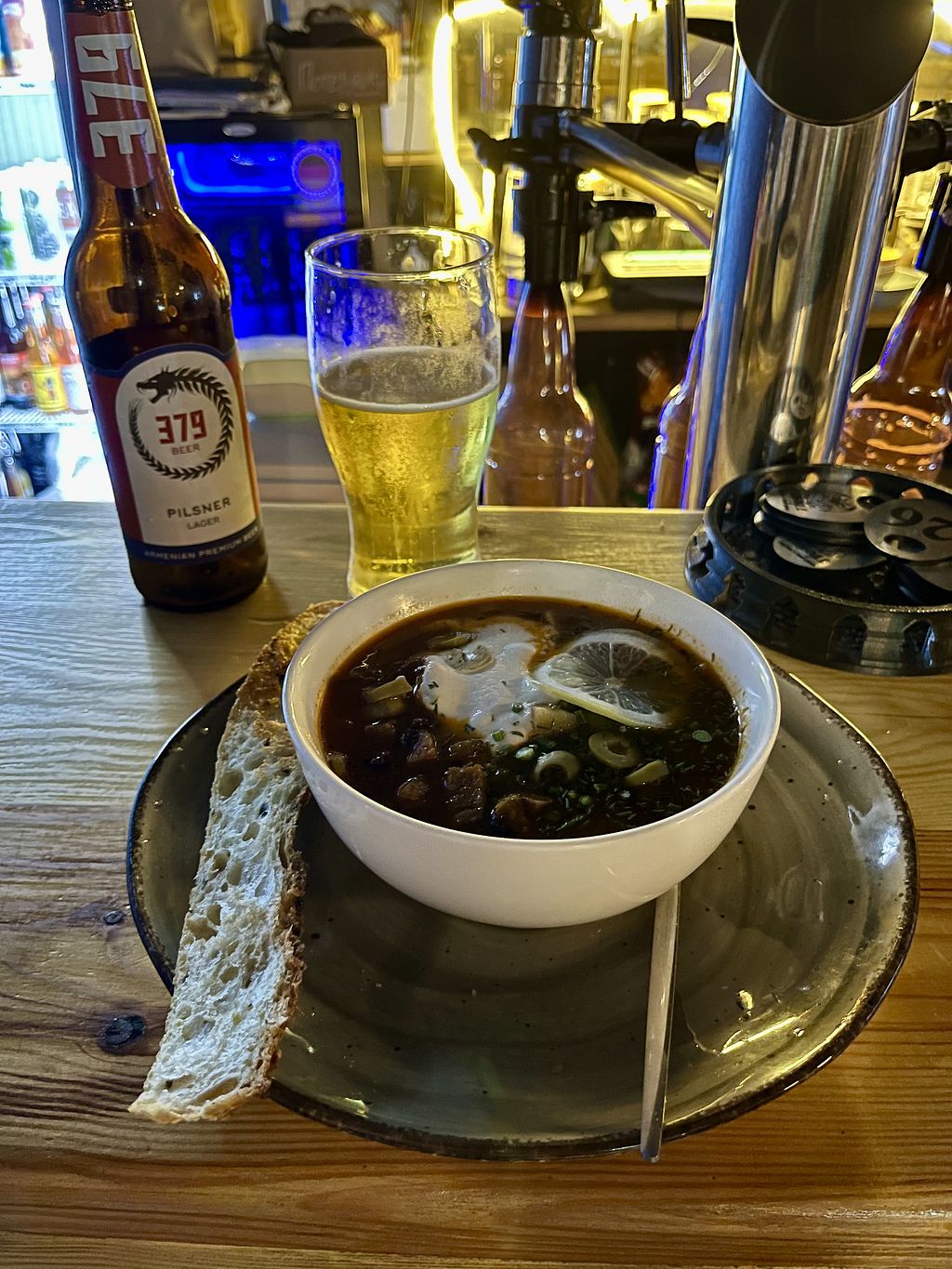 Asian style cold soup, with soy "meat", vegetables. Forgot its name, b…
