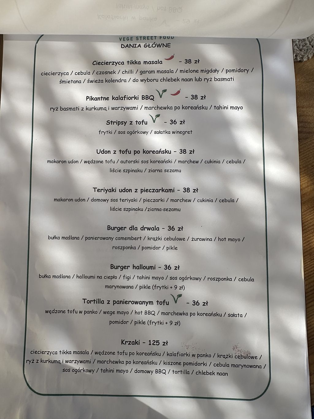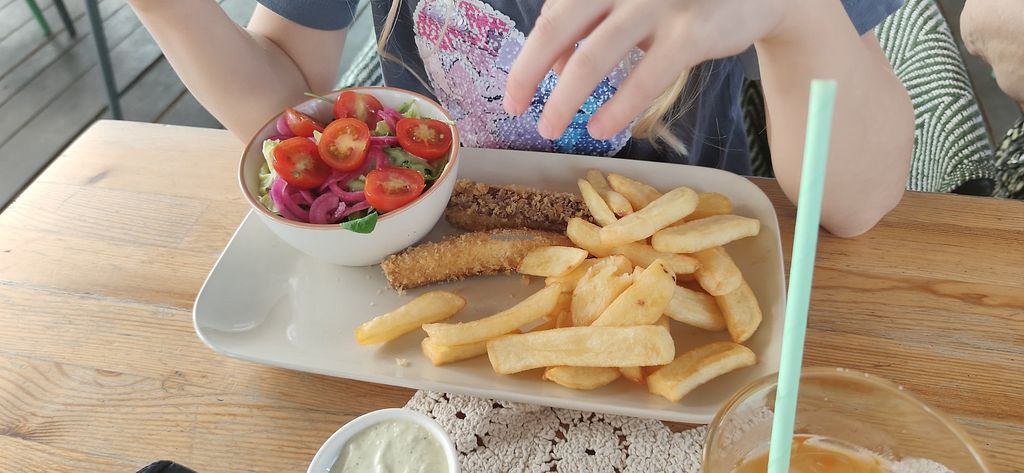 Duży wybór wegańskich dań. Jadłam stripsy z tofu z sałatką i frytkami. Smaczne, świeże, chrupiące. Porcja ogromna.
