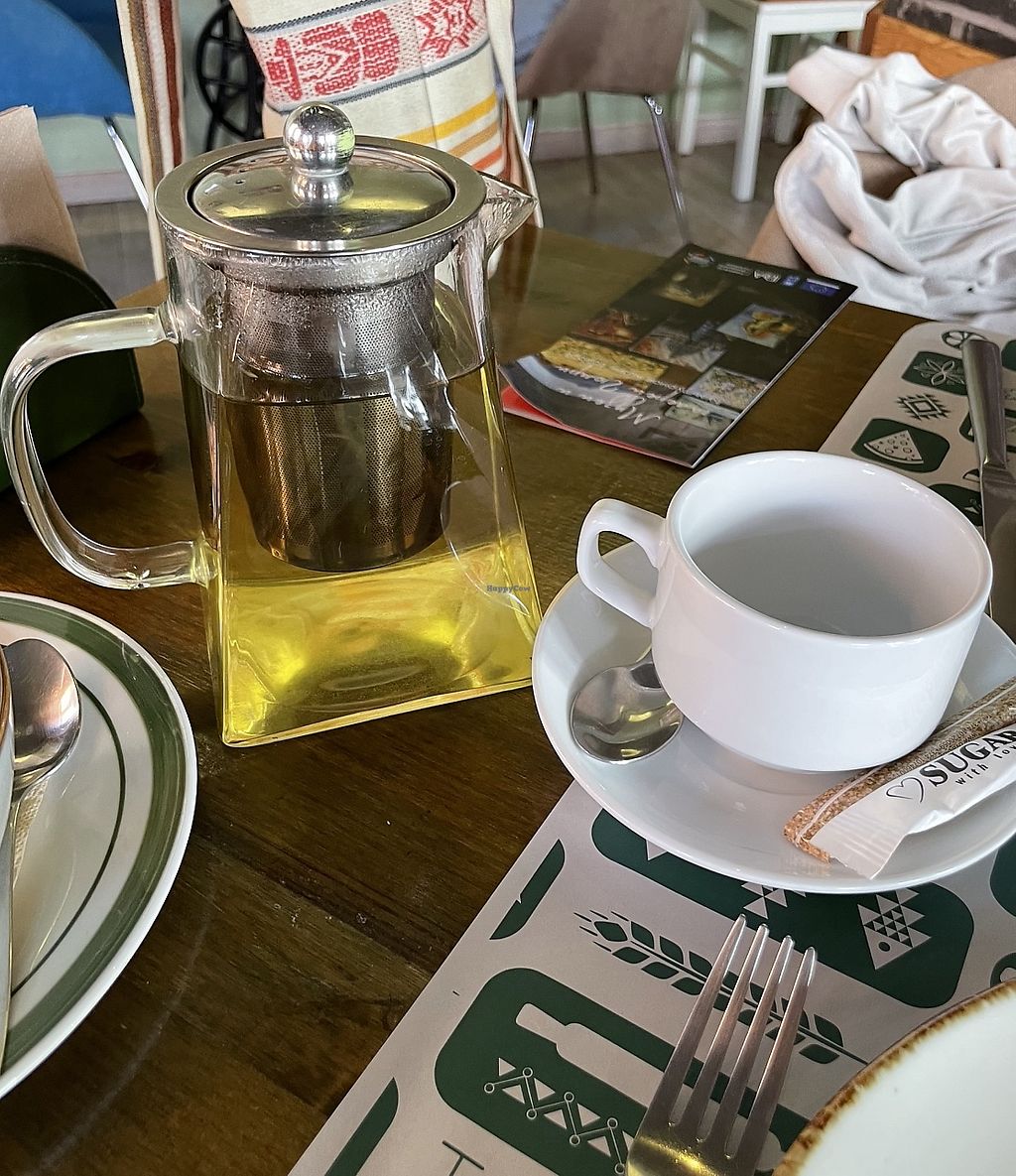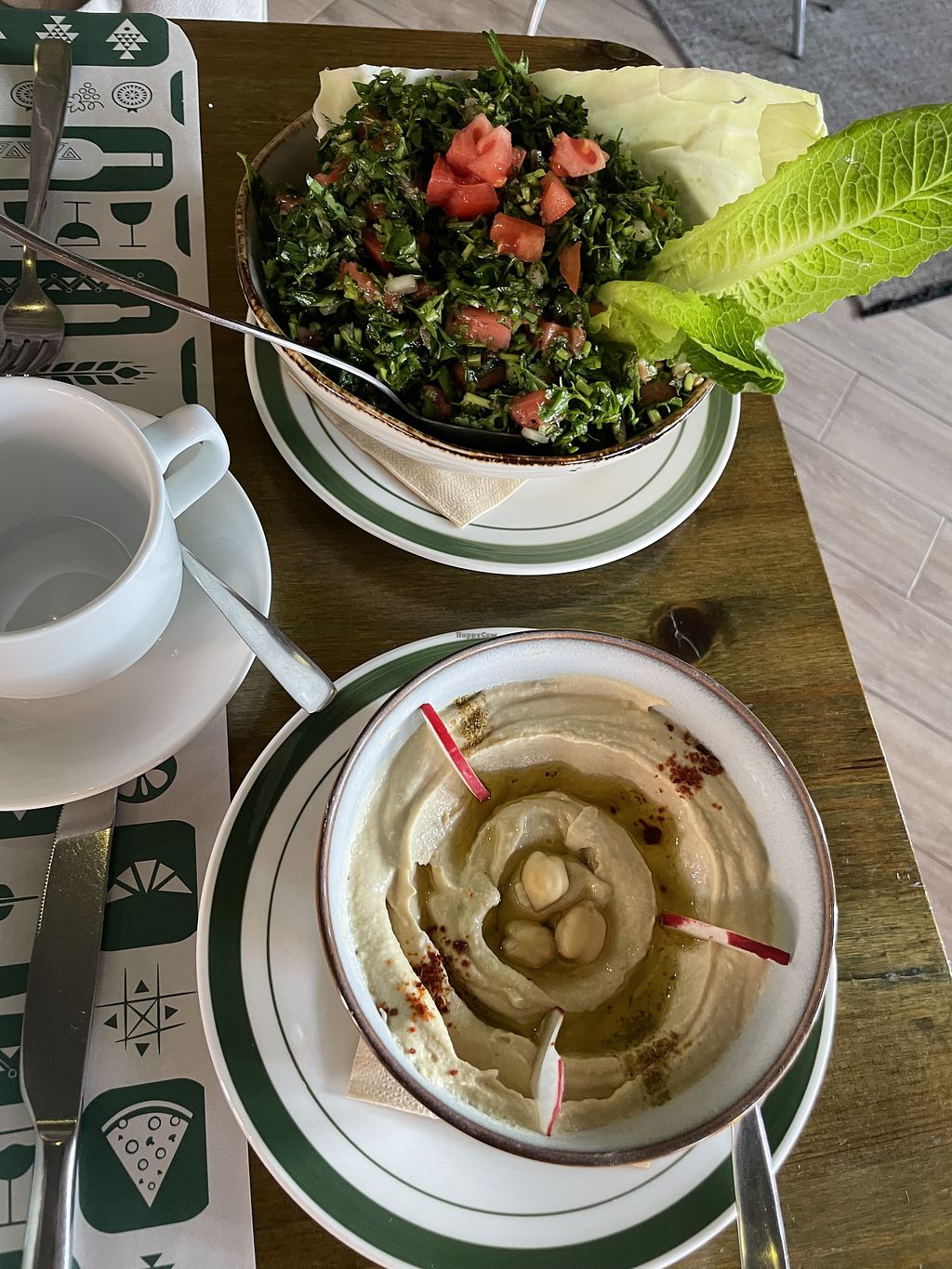 Summer salad is delicious, seasoned with oil. The portion is huge.