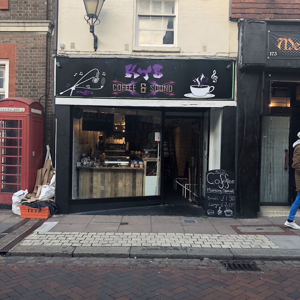 Independent coffee shop, small recording studio and radio station recording vocals and voice overs. Offers only vegetarian sandwiches but has vegan cakes such as chocolate and beetroot and has soya and almond milk available for coffees. Dog friendly. Reported closed, May 2019.