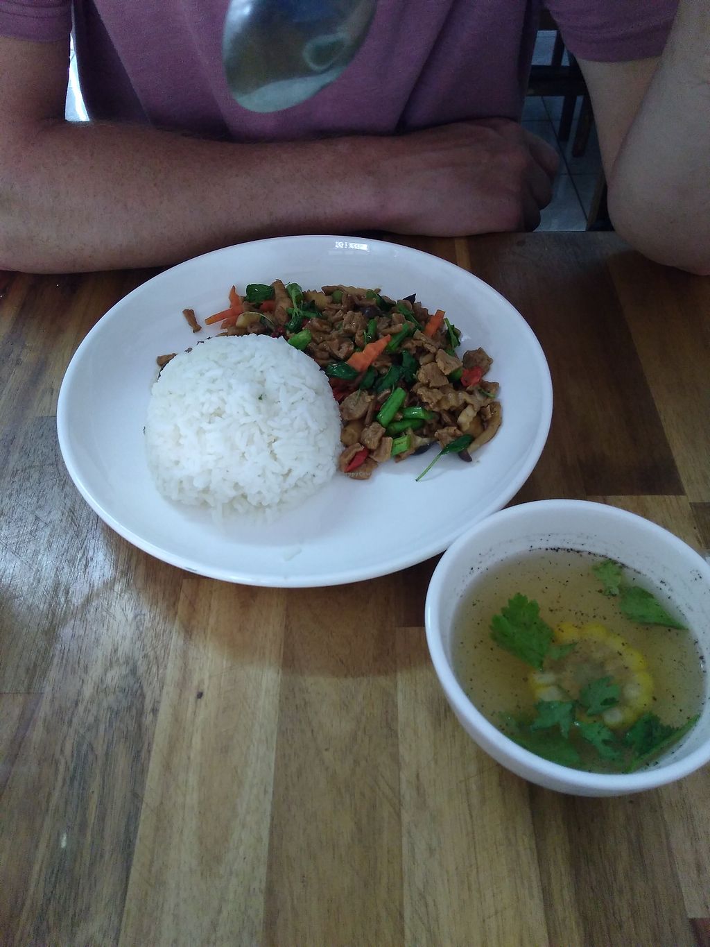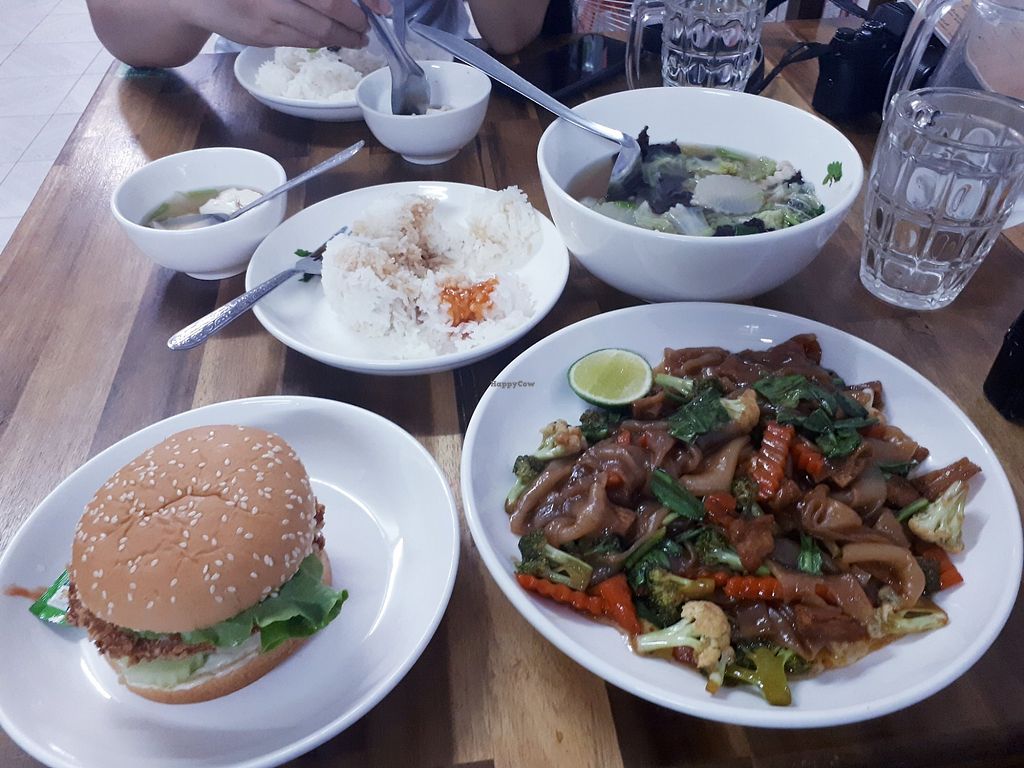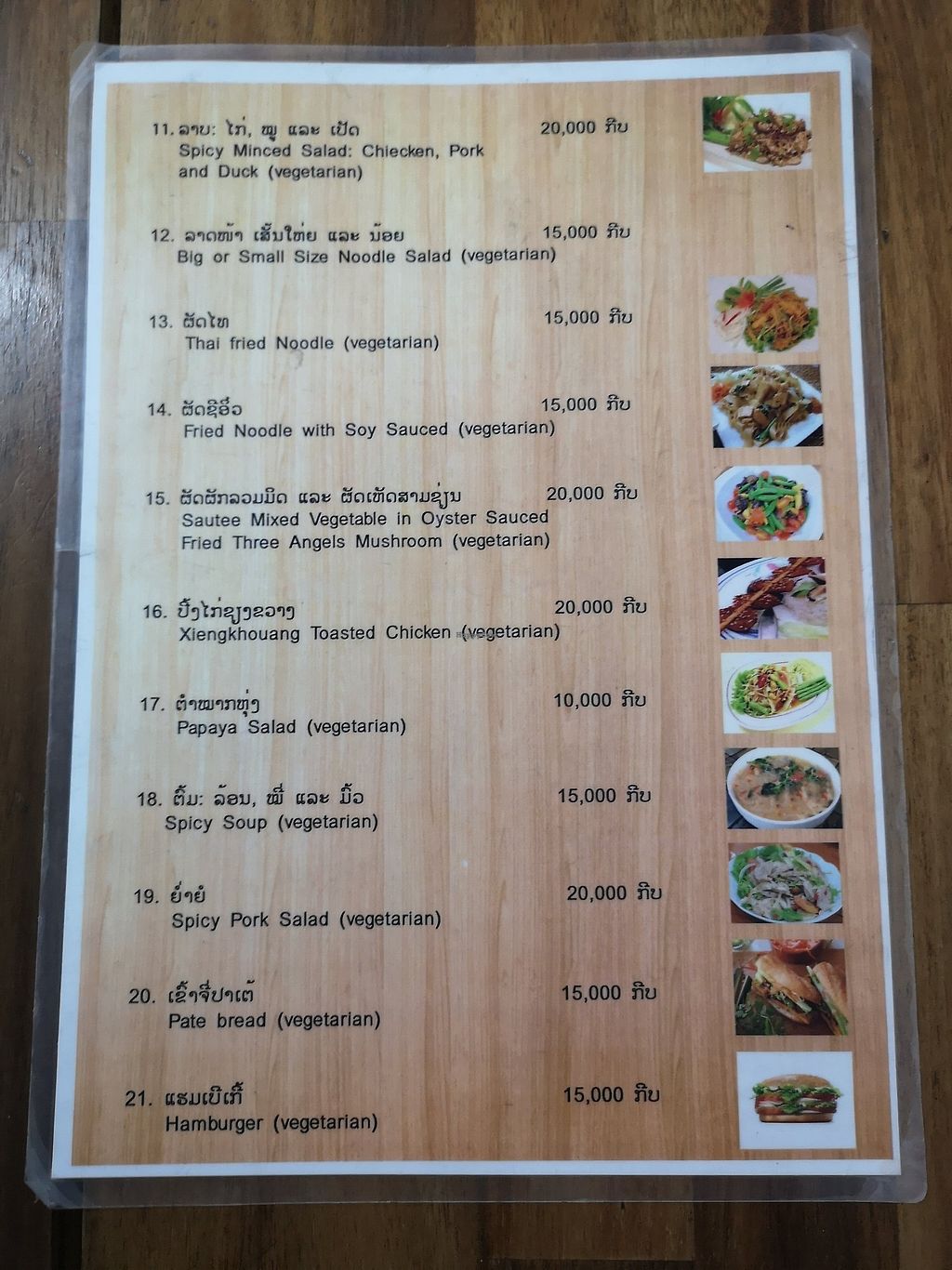 Hamburger, Fried noodles, Soup, 2 rice. 60.000kip
