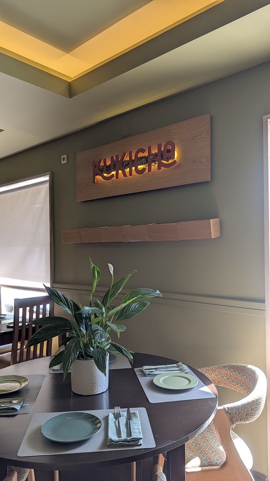O staff é muito simpático e atencioso, o ambiente é muito relaxado, o espaço é muito convidativo, com cores harmoniosas, muito bem decorado, requintado. A comida é muito deliciosa, bem preparada, com doses bem servidas e preços acessíveis. Existe comida para todos os gostos, saudável/nutritiva e "fast food", existem sugestões do talentoso chefe muito bem elaboradas. Existem várias bebidas à escolha, incluindo chá, água filtrada servida em garrafas de vidro com muita classe, sumos, vinhos, etc. Existe mais do que uma opção de sobremesa. Tem opções sem glúten. Foi um jantar de sábado muito agradável, eu escolhi a salada kukicha muito nutritiva e deliciosa, a sopa de cogumelos era muito deliciosa. Eu e a minha família estamos muito agradecidos e adoramos tudo.