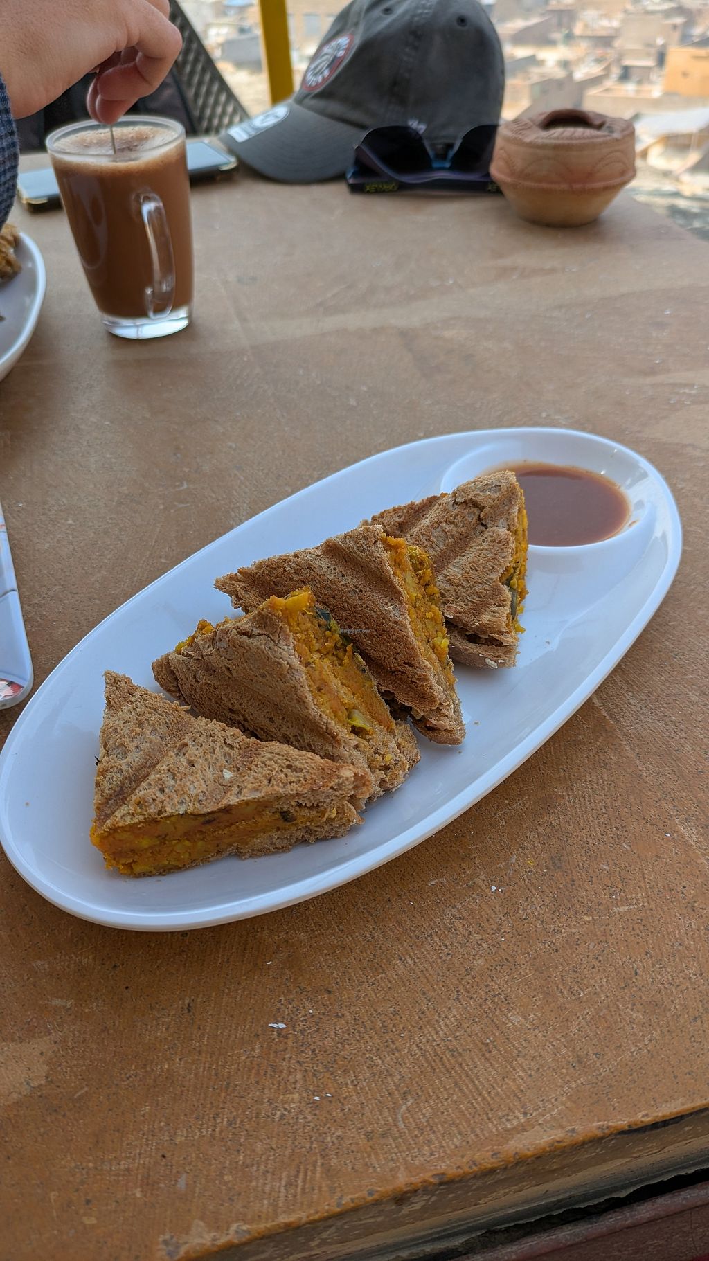 The staff are sooo friendly. Probably the most positive people in India! ♥️ They made us vegan bread for the next day but unexpectedly charged us for it when he paid out bill (the next day after eating the bread) but the masala sandwiches were amazing! They were meant to be 150 but charged 200, and we ordered an extra one as it was quite small. It was SO good, to be honest I would have it again. And thankful they make vegan alternatives :)