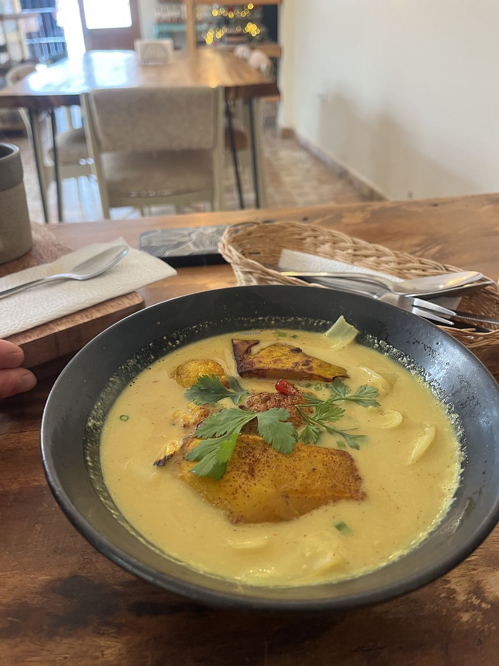 Beyond Burger (not sure if brioche?) and Thai yellow curry