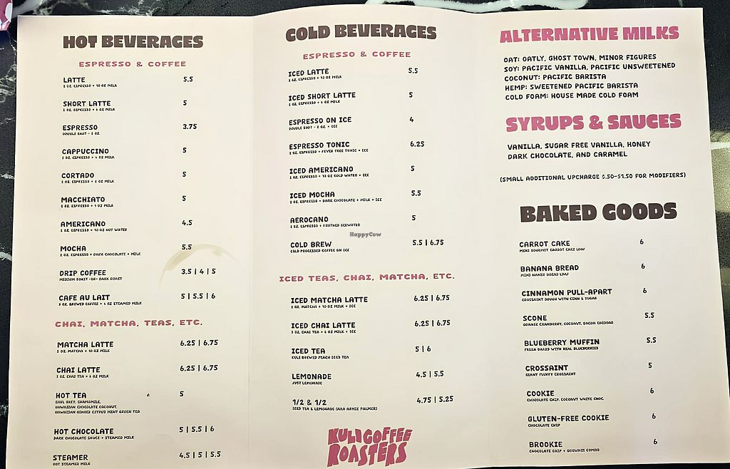 Coffee shop offering a variety of plant-based milk alternatives, including oat, soy, coconut, and hemp. Open Mon-Sun 7:00am-4:00pm. More