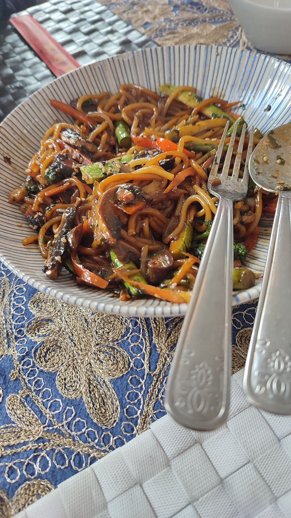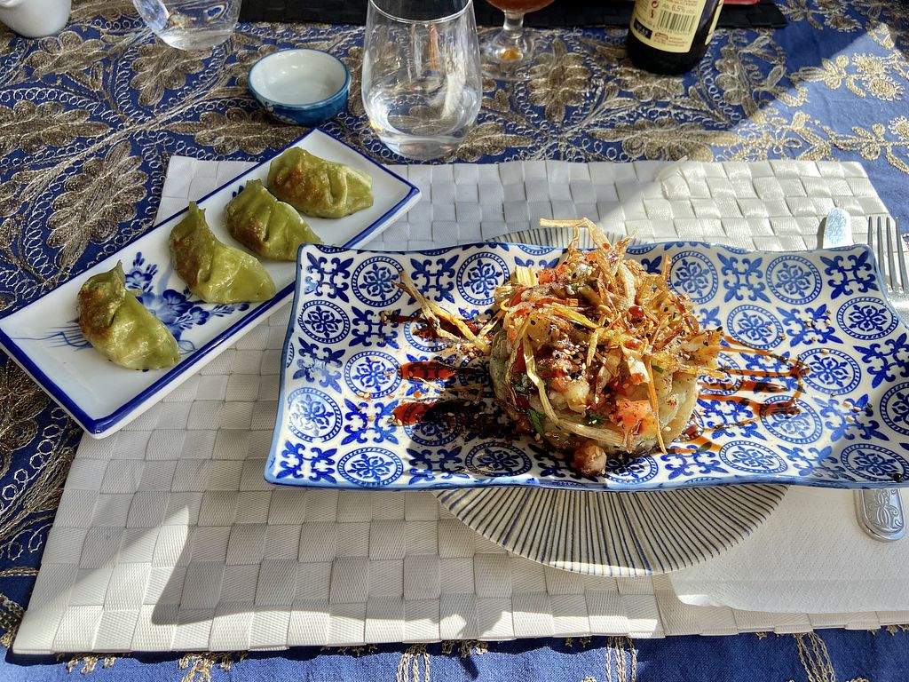 Está genial situado, justo en frente del acueducto y con muy buenas vistas. Tienen gyozas veganas, wok y sushi. No te quedas con hambre si te gusta la comida asiática. La camarera muy simpática, te informa de las cosas que tienen.