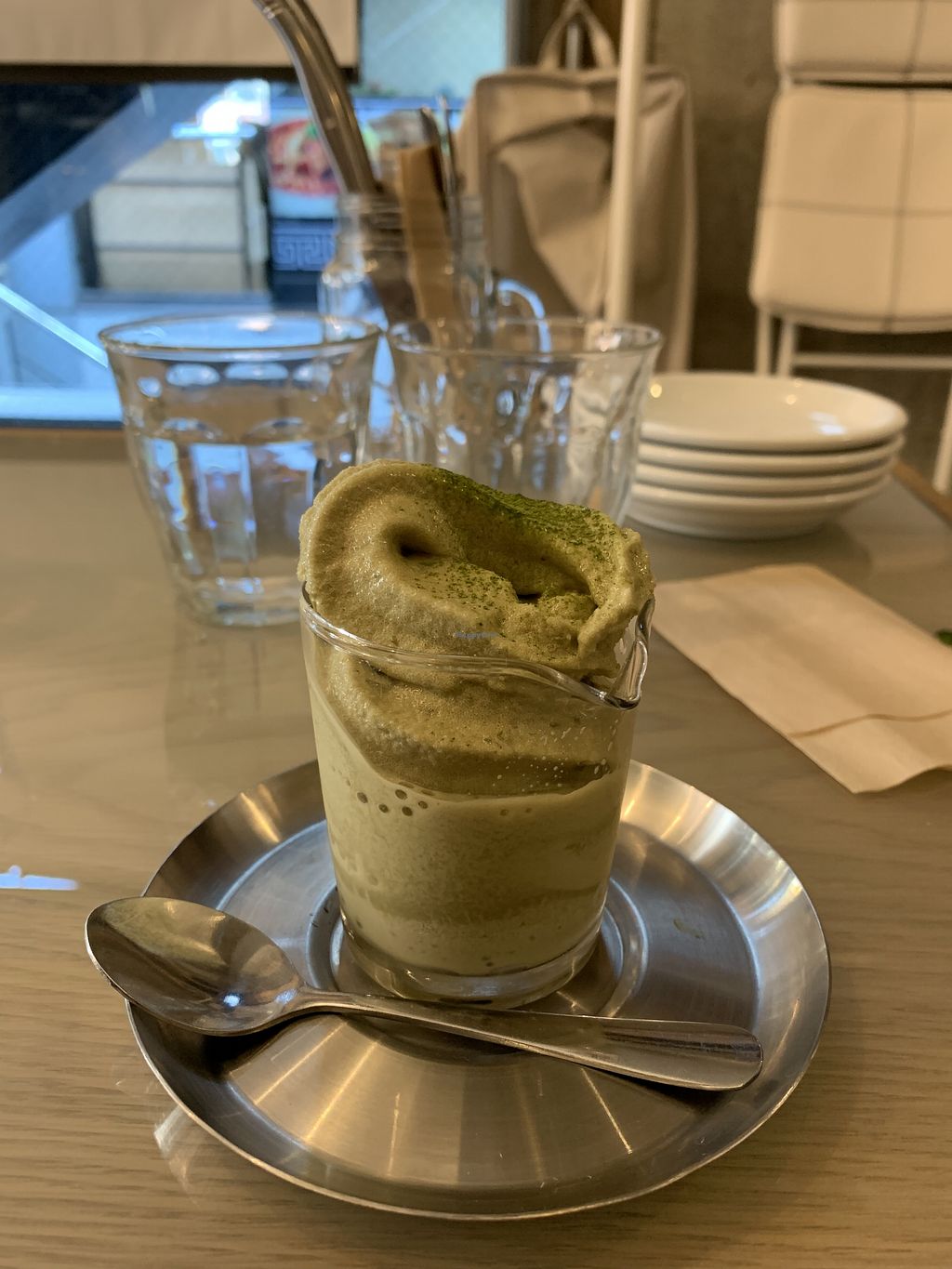 We had the vegan curry for breakfast and it was delicious. Not too strong. They also have a salad with soy meat which we’ll try the next time. They gave use a free dessert too. I got matcha icecream. Recommended!