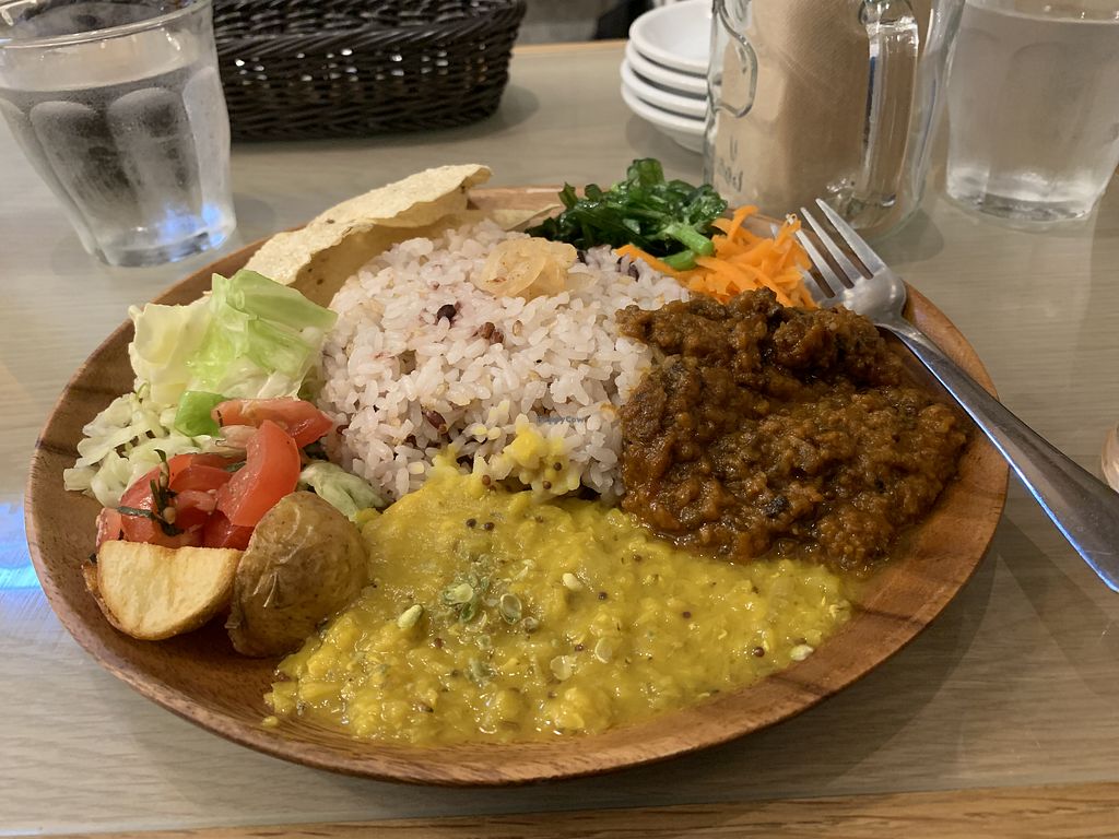 We had the vegan curry dinner. Was really great food, some of the best we have had in Tokyo in fact. It had two types of curry, some pickled veg, rice. Sounds simple but was exceptional. Then VEGAN ICE CREAM. They won here too. They have a parfait ice cream type thing with fruit and granola that is next level. This place is HIGHLY recommended. Plus they have organic produce and some snacks etc.