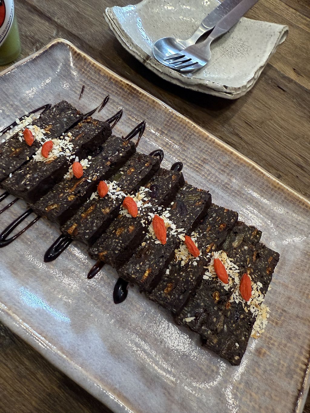 You can really feel the love and pride that goes into this place. The owners are such memorable people and truly care about what they do. I loved that they make their veggie patties completely in-house — none of that Beyond Meat stuff — just real, wholesome ingredients. They even surprised us with a free raw dessert, which was an interesting touch!