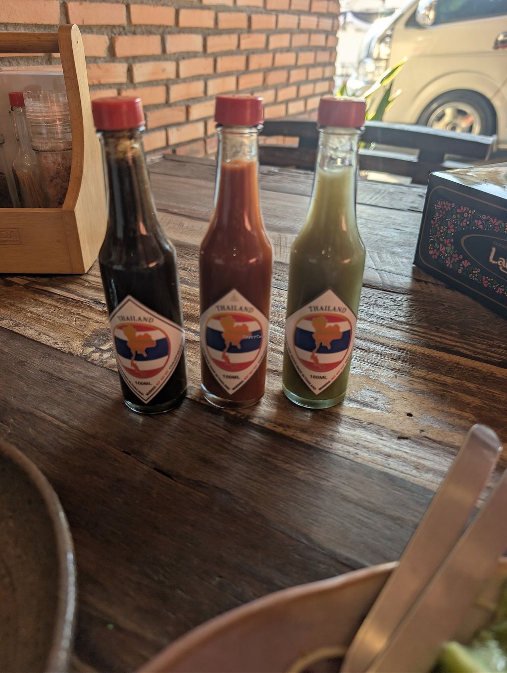 Everything vegan. Nice view on a temple in front of the door. Homemade Sauces 😋