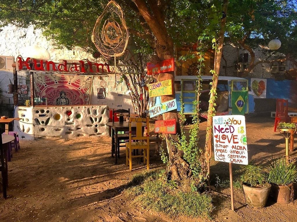 Serves meat, vegan options available. Serves burgers, pizza, chapati, salad, soup, and dessert. Includes some vegan choices. Confirmed closed, Sep 2017.