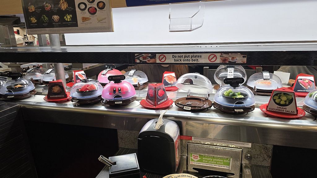 Serves meat, vegan options available. Restaurant offering vegan-friendly dishes like avocado hand roll (sushi hand roll with avocado), veggie hand roll (vegetable sushi hand roll), and vegetable tempura (battered and fried vegetables). Open Mon-Thu 11:00am-8:00pm, Fri 11:00am-9:00pm, Sat 10:30am-9:00pm, Sun 10:30am-7:00pm.