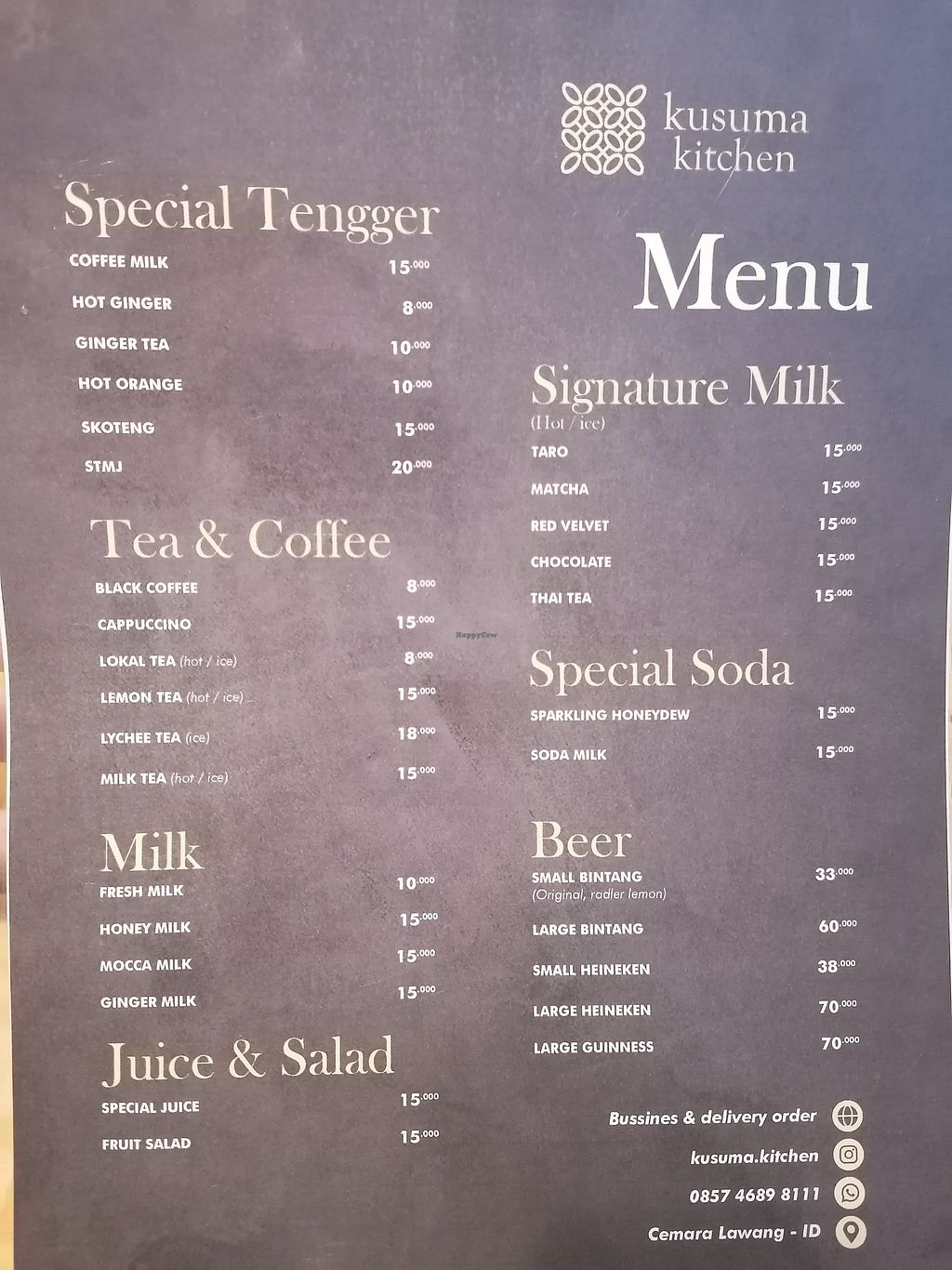 Drinks menu