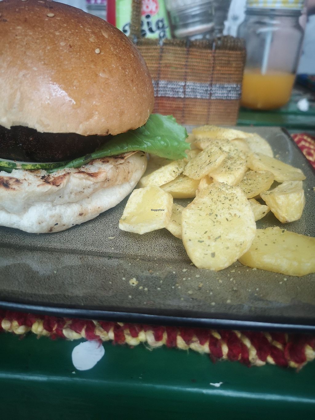Serves meat, vegan options available. Restaurant and art café offering vegan dishes such as burgers, salads and fries. Hosts monthly open mic poetry sessions and live music events. Open Mon-Tue 8:00am-6:00pm, Wed 8:00am-7:00pm, Thu-Sat 8:00am-6:00pm.