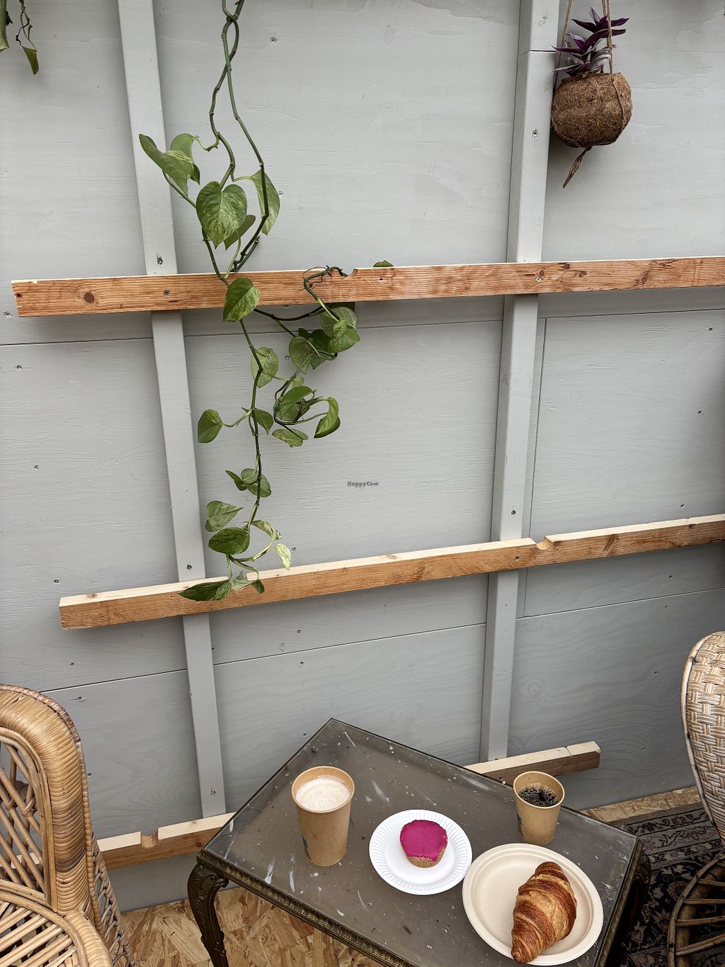 Lovely place, you can either sit more ‘inside’ which is a bit warmer in winter or outside-ish in the greenhouse. They have a good selection of vegan sweets (fresh apple pie was delicious! And a good vegan croissant) and dito lunch dishes. We both had the pulled mushroom pita and agreed it was great. Very friendly service as well