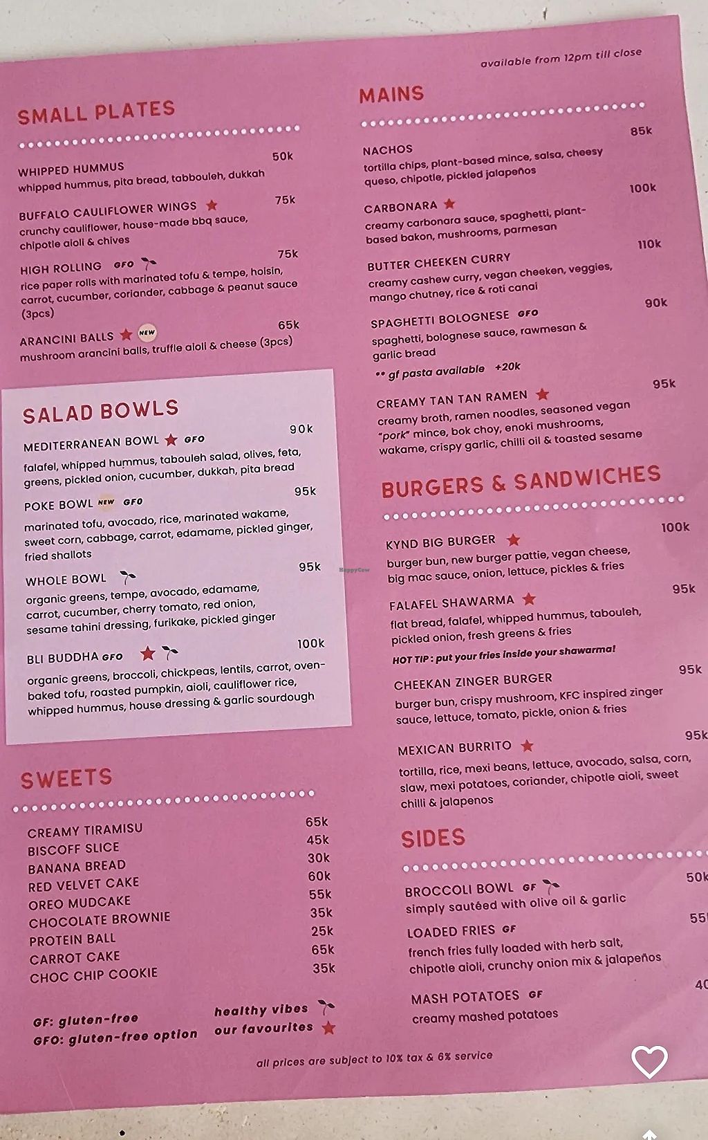 Arancini balls (YUM!) 65K + Buffalo cauliflower wings 75K (plus tax an…