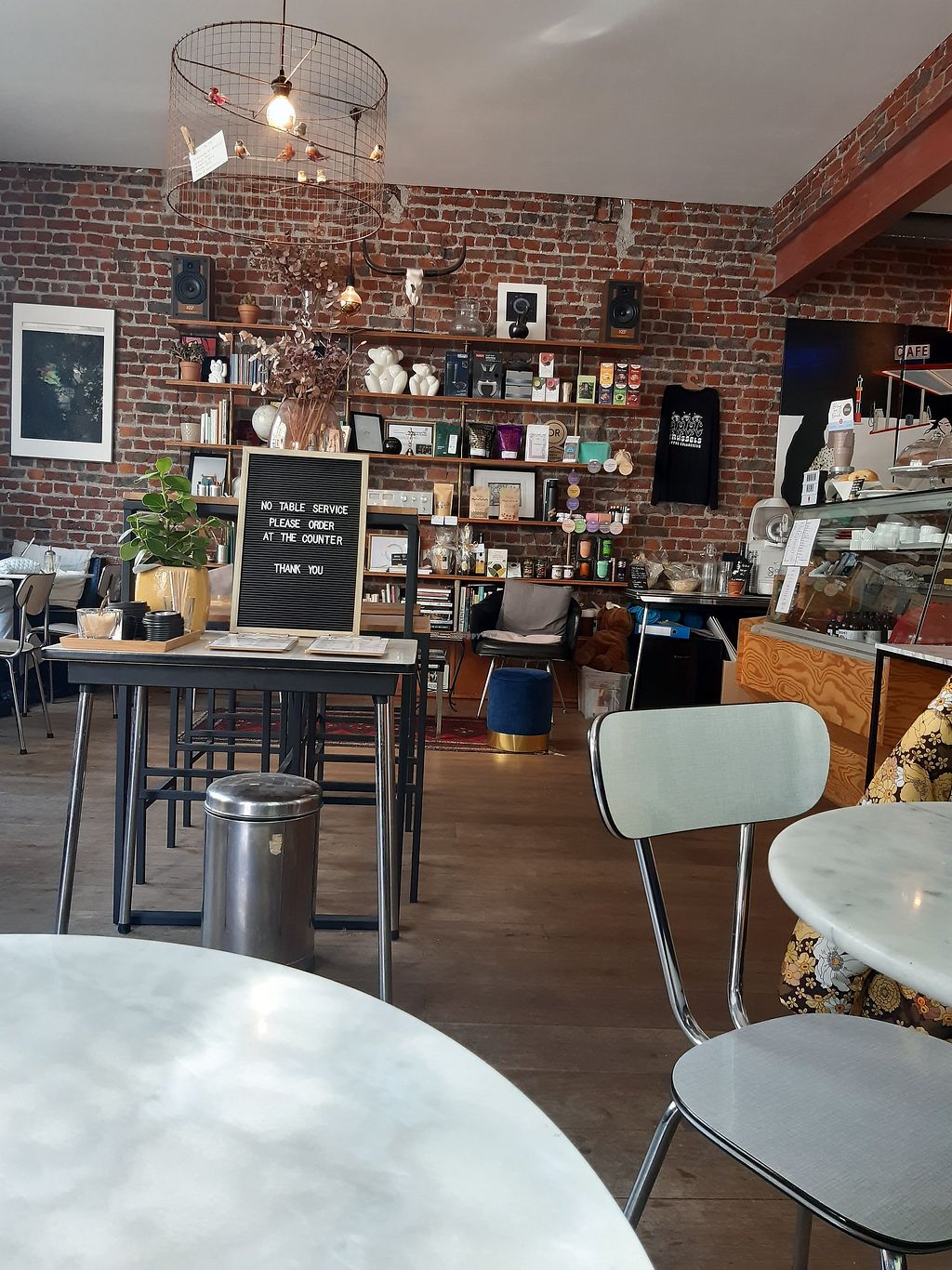 They have it all: a city interior, good coffee, sweets, creative smoothies, and hearty food as well!