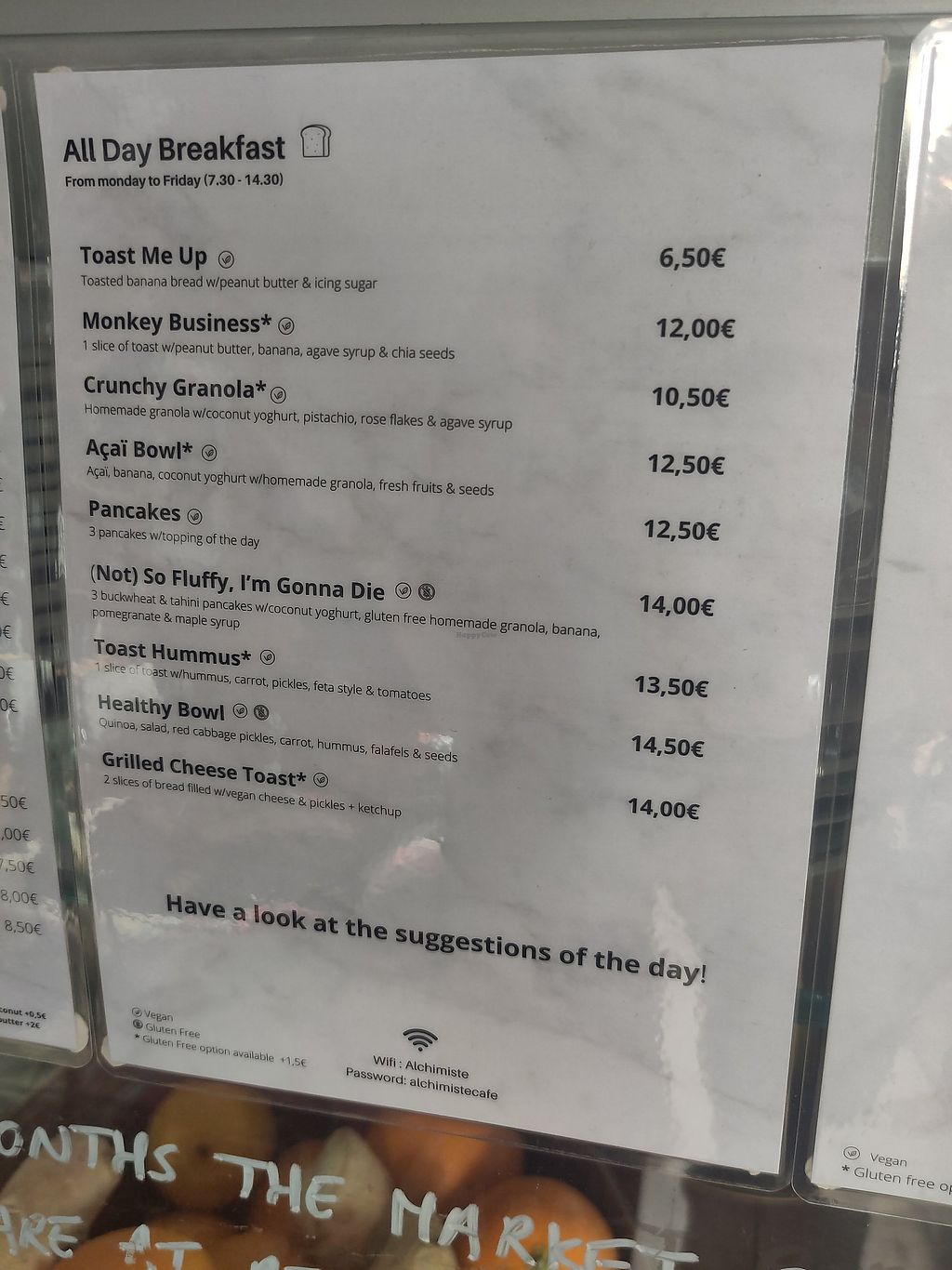 We needed to grab an early weekday breakfast before jumping on a train, and we really prefer to visit fully vegan places on holiday so this left L’Alchemiste as our only option.
