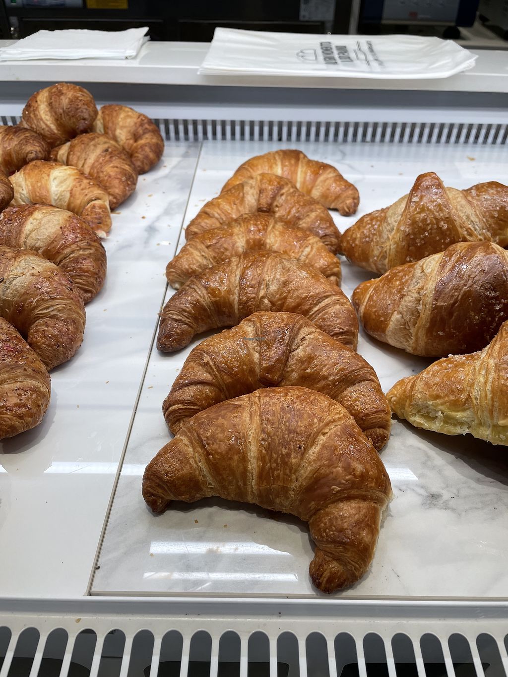 Bakery serving vegan croissants including plain and filled. Open Mon-Sat 07:30-19:30. Closed Sun.