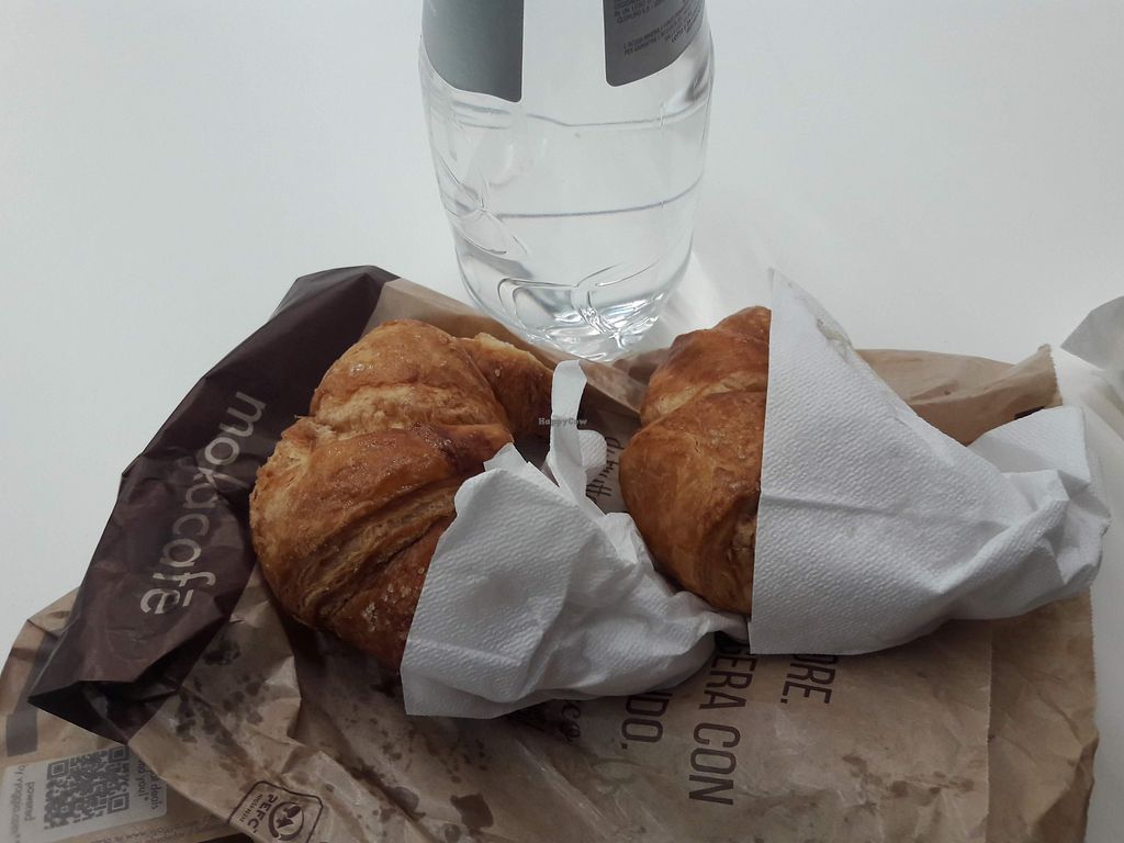This bakery/cafe is located at gate B55 of Malpensa International Airport. The baker knew what vegan food is and she had croissants with orange filling and plain croissants that was vegan. Got quite a few of them even for my flight. Very tasty!