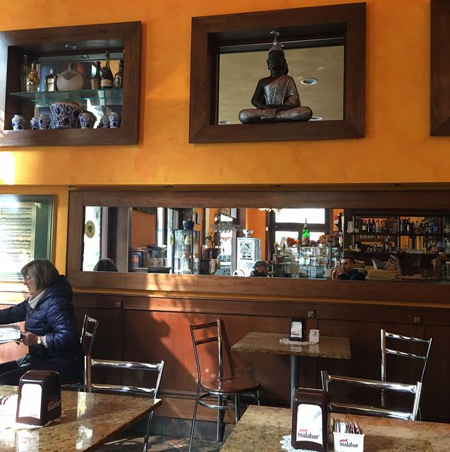 Serves meat, vegan options available. Cafeteria offering a vegan breakfast with dairy-free milk or cappuccino, vegan croissant, and fruit juices. Reported closed, Aug 2018.