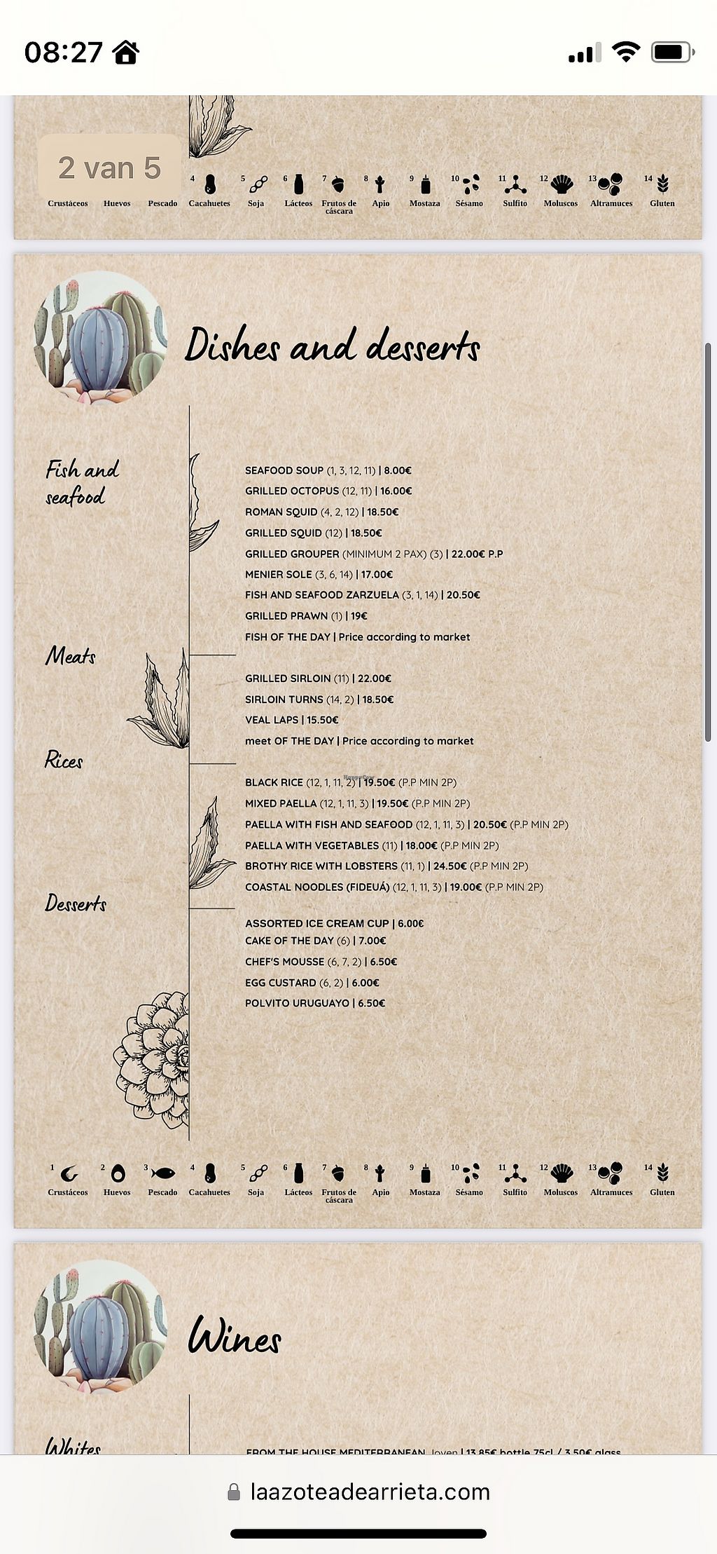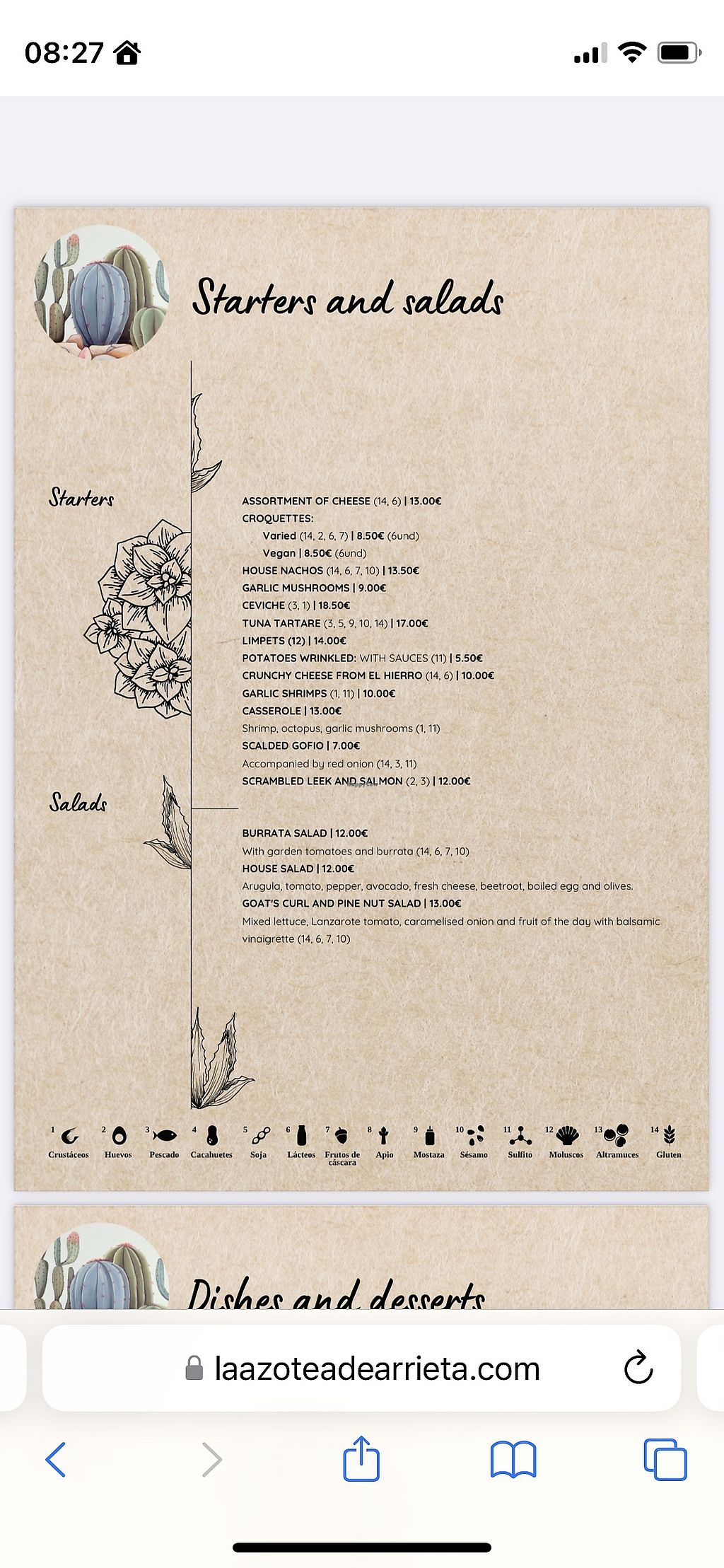 Allergies clearly marked on the menu