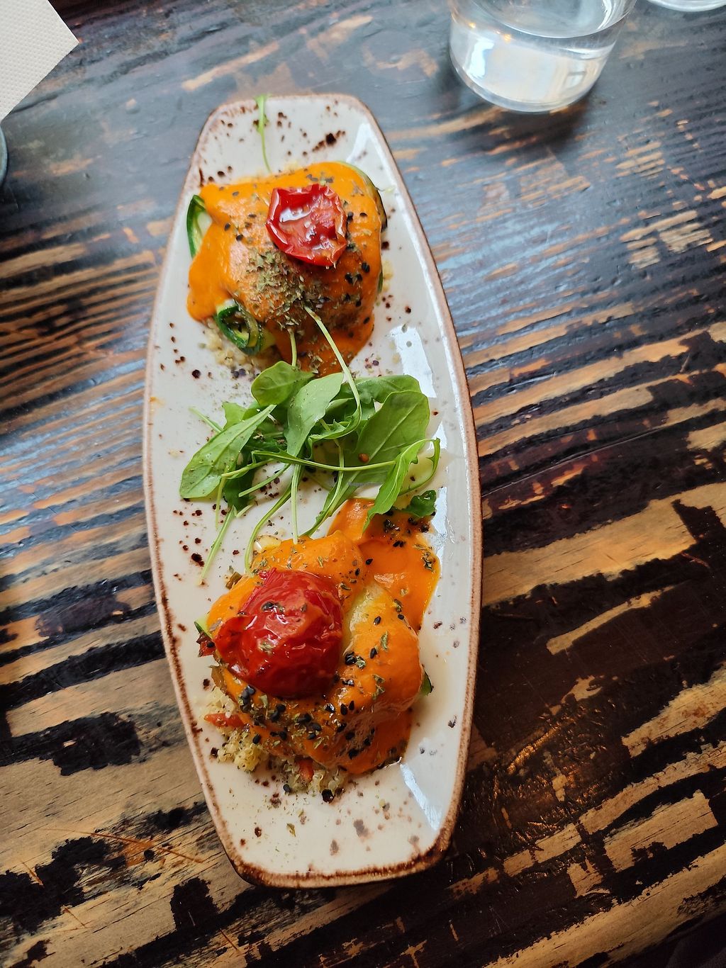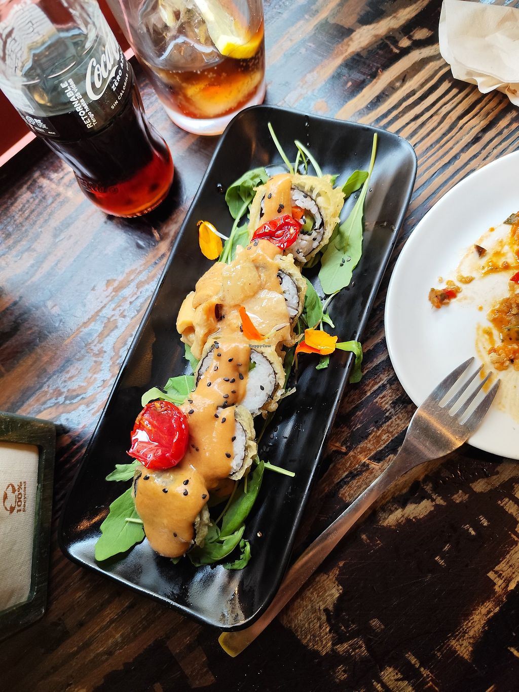 Read moreDeep-fried sushi rolls with spicy mayo were good, as was the salmorejo chilled tomato soup. Other vegan sides (aubergine caponata, a kind of baked veggie rice and courgette rolls in tomato sauce) were fine but nothing special. Bread not very fresh.