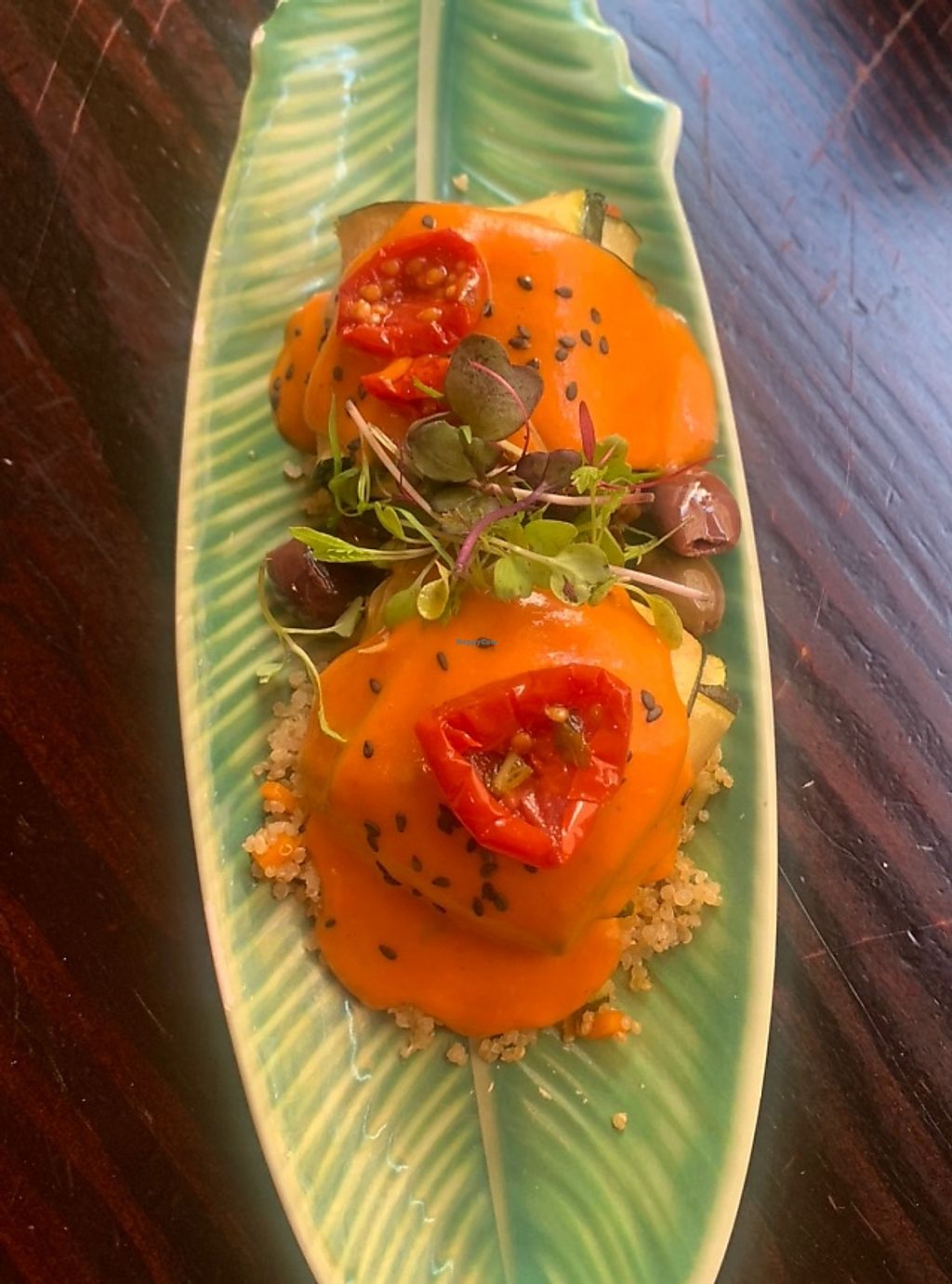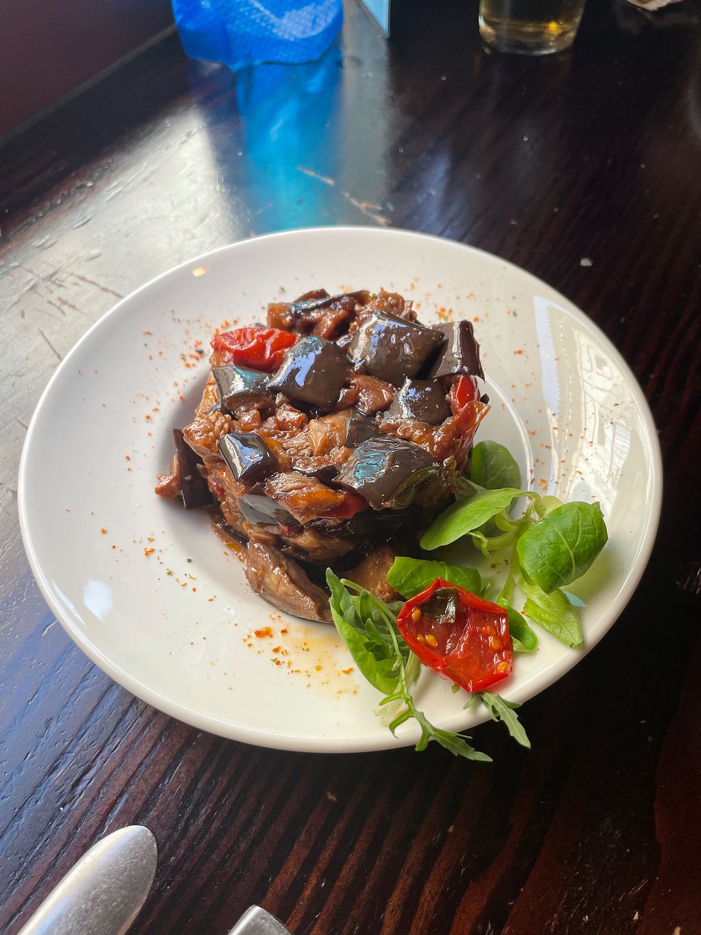 Eggplant tapa with olives and cherry tomatoes! 😍 #Veganuary
