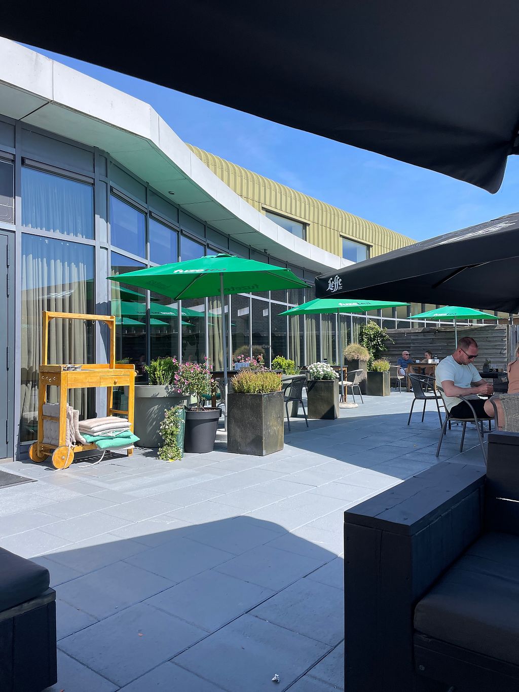 Bar and restaurant at a fitness centre and padel location. Inside and Outside seating. Hummus sandwich, falafel, plant based milk and vegan burger. Very friendly service