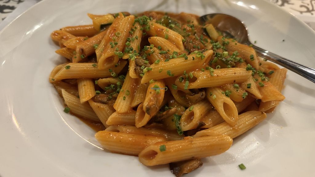 Vegan bruschetta with fried eggplants was fantastic und the Pasta with lots of vegetables and tomato sauce was also great 👍