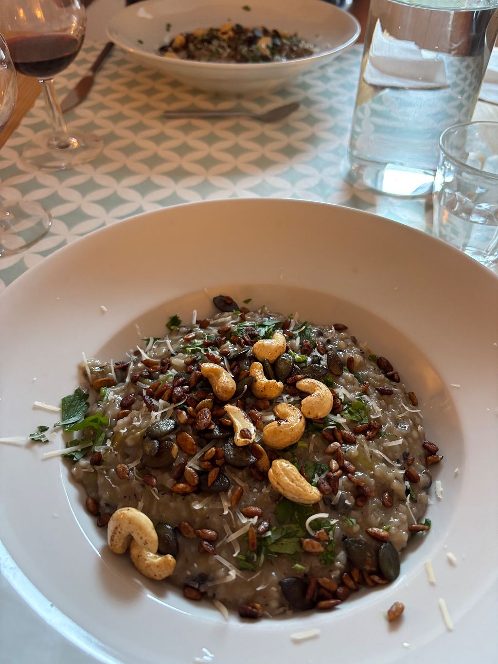 We’d ordered the three course evening meal which came with a lovely wine. It was such a delight to have a beautiful meal made for us and not to be scratching around for vegan food. We had a raw salad starter, a wild mushroom risotto for main, and to finish homegrown plum crumble.