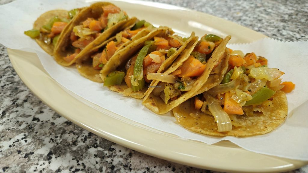 Serves meat, vegan options available. Mexican restaurant with vegetarian (vegan) street tacos with the option to add avocado. Open Mon-Thu 7:00am-9:00pm, Fri 7:00am-10:00pm, Sat 8:00am-10:00pm, Sun 9:00am-9:00pm.