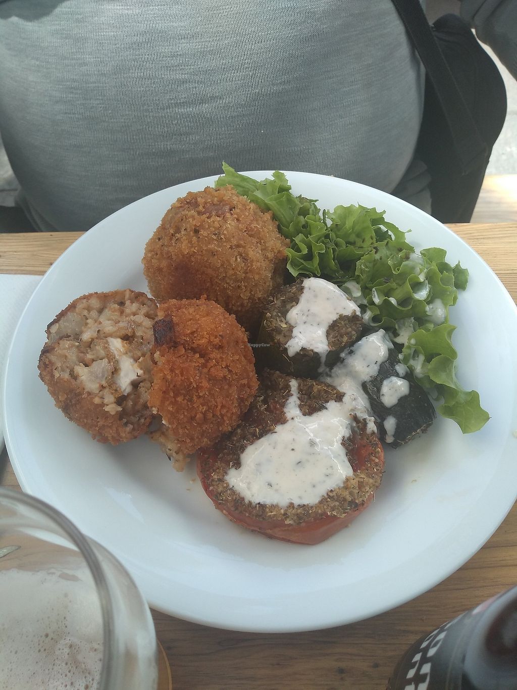 Arancini, cooked zucchini and tomato with tasty sauce