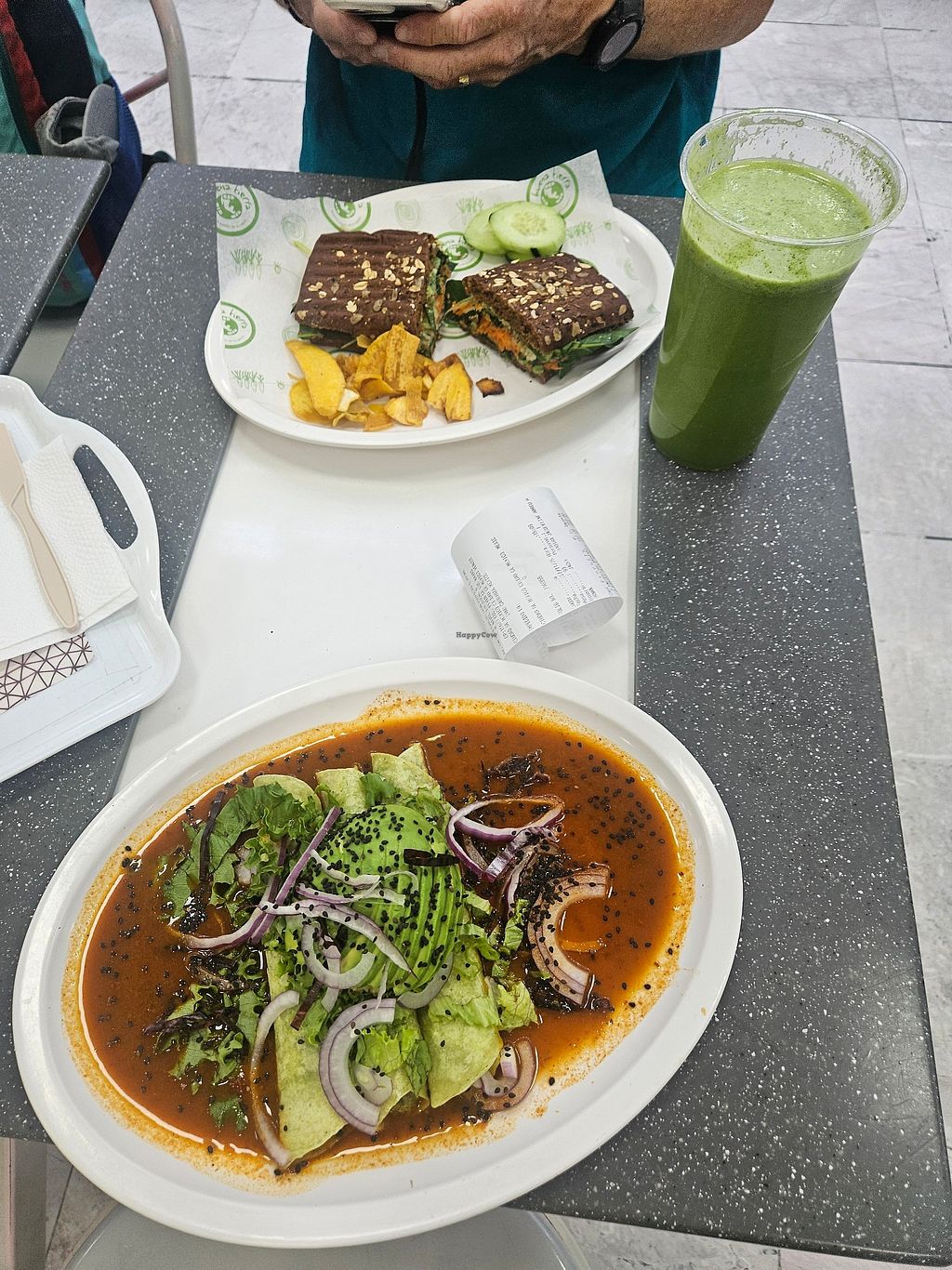 Happy Cow again to the rescue! We had a long wait at the Mexico City airport, and were looking for a restaurant to eat at. Buena Tierra did NOT disappoint! We asked which items were vegan, or could be made vegan. We wound up ordering the Guru bowl and the enchiladas veganas. Both items tasted amazing... and were so big that we couldn't finish them. Would definitely eat here again on our next connection!!!
