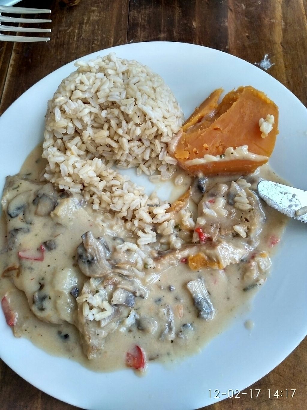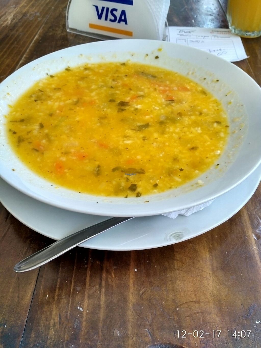 This place is on the other side of the street from a 100% veggie restaurant. This place does serve a fish filet if requested. As of August 2014 the price was 7.5 Soles for the meal of the day without fish. The dining room is very attractive. My meal included a broccoli and eggplant casserole, beans, rice and mock meat, and a flavorless drink.